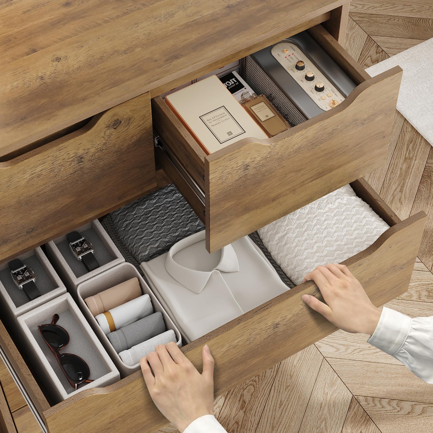 - STYLISH DRESSER FOR HOME: Created with clean lines and minimalist flat-front design, this chest of drawer can easily fit in any decorative style. Unique cut-out handles and elegant fully closed base create a contemporary, clutter free look for your room