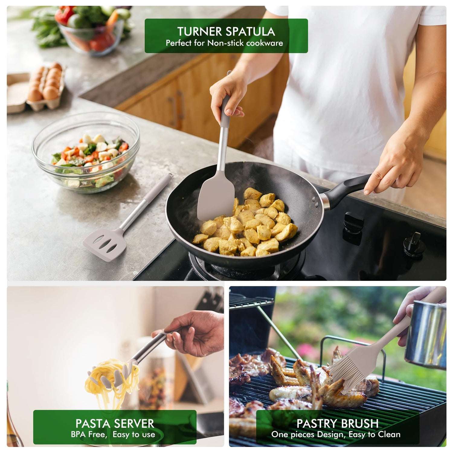 - 【HIGH QULAITY】: Made of food grade silicone with Non-rust Stainless Steel,BPA Free, sturdy. Unlike the nylon or wooden material easy broken, our utensils set will last long.