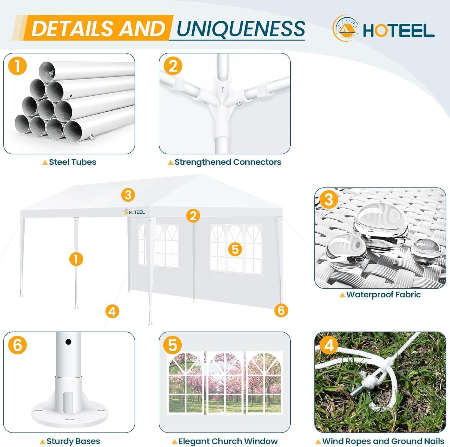 HOTEEL 10'x20' Outdoor White Waterproof Gazebo Canopy Party Tent with 4 Removable Sidewalls Windows Carpas para Patio for Weddings Events Beach BBQ Parties
