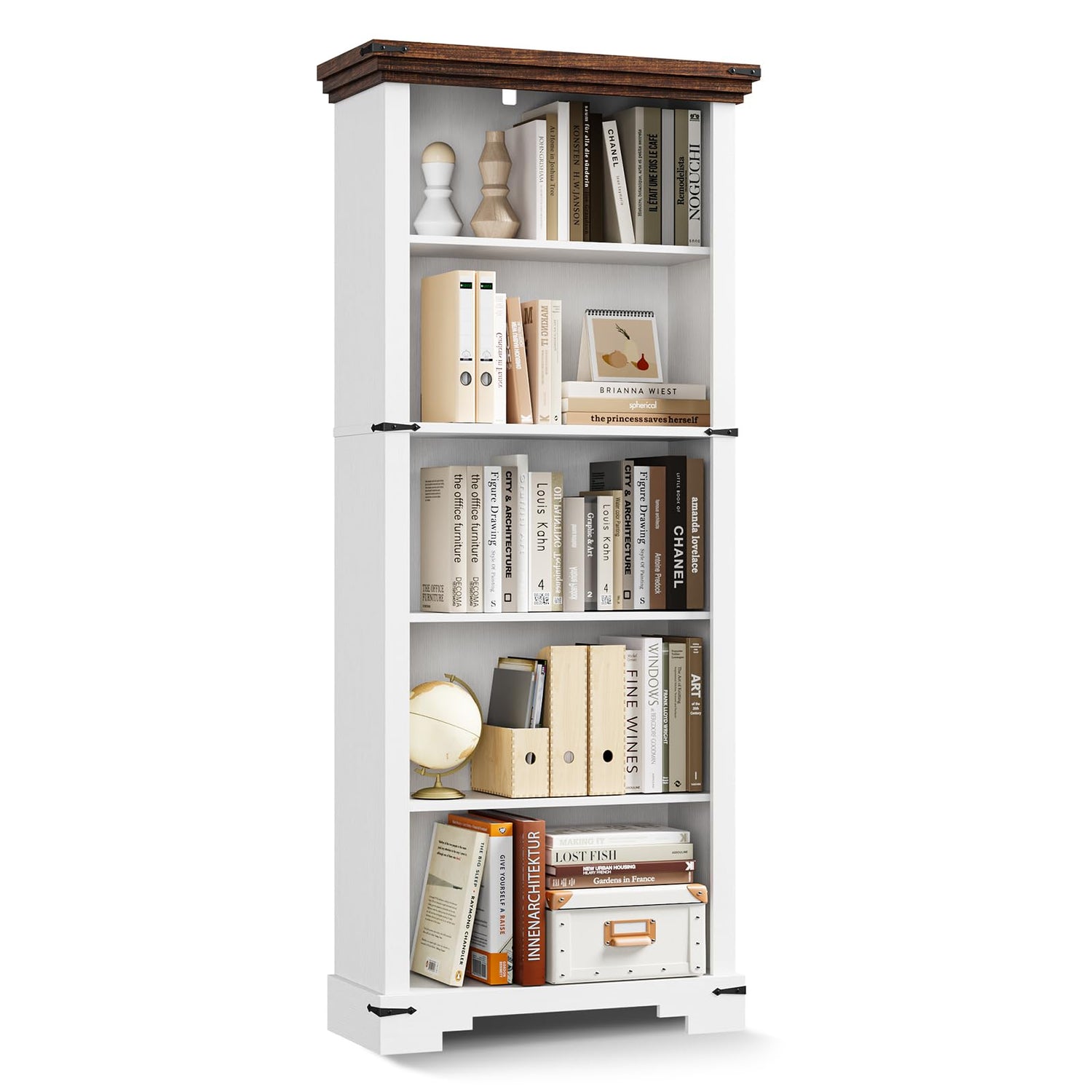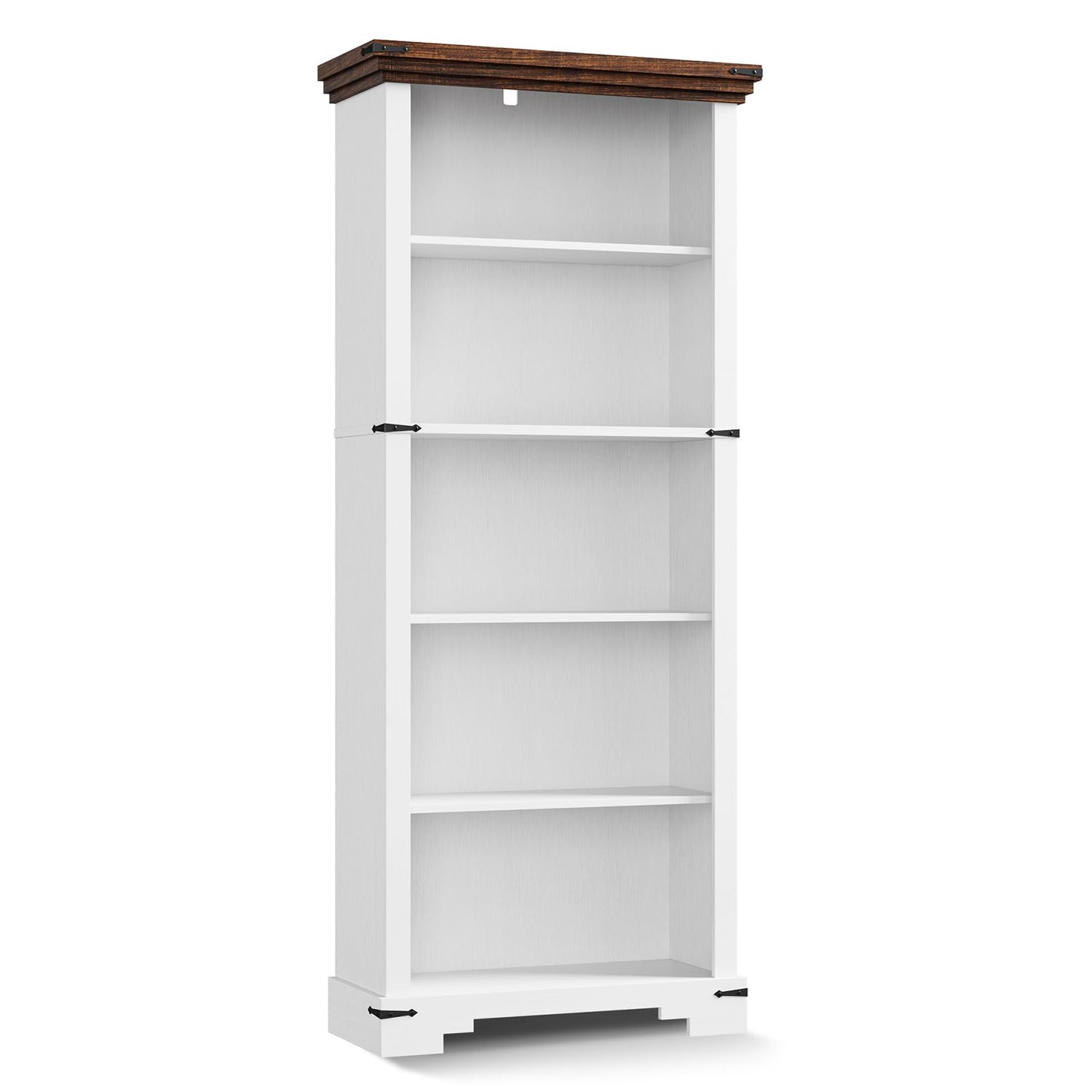 - Storage Functionality: This 5-tier farmhouse bookshelf measures 22"W x 61.1"H, featuring five spacious open shelves perfect for displaying books, decor, and collectibles.