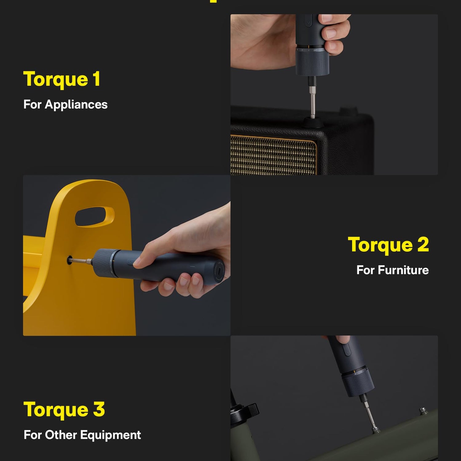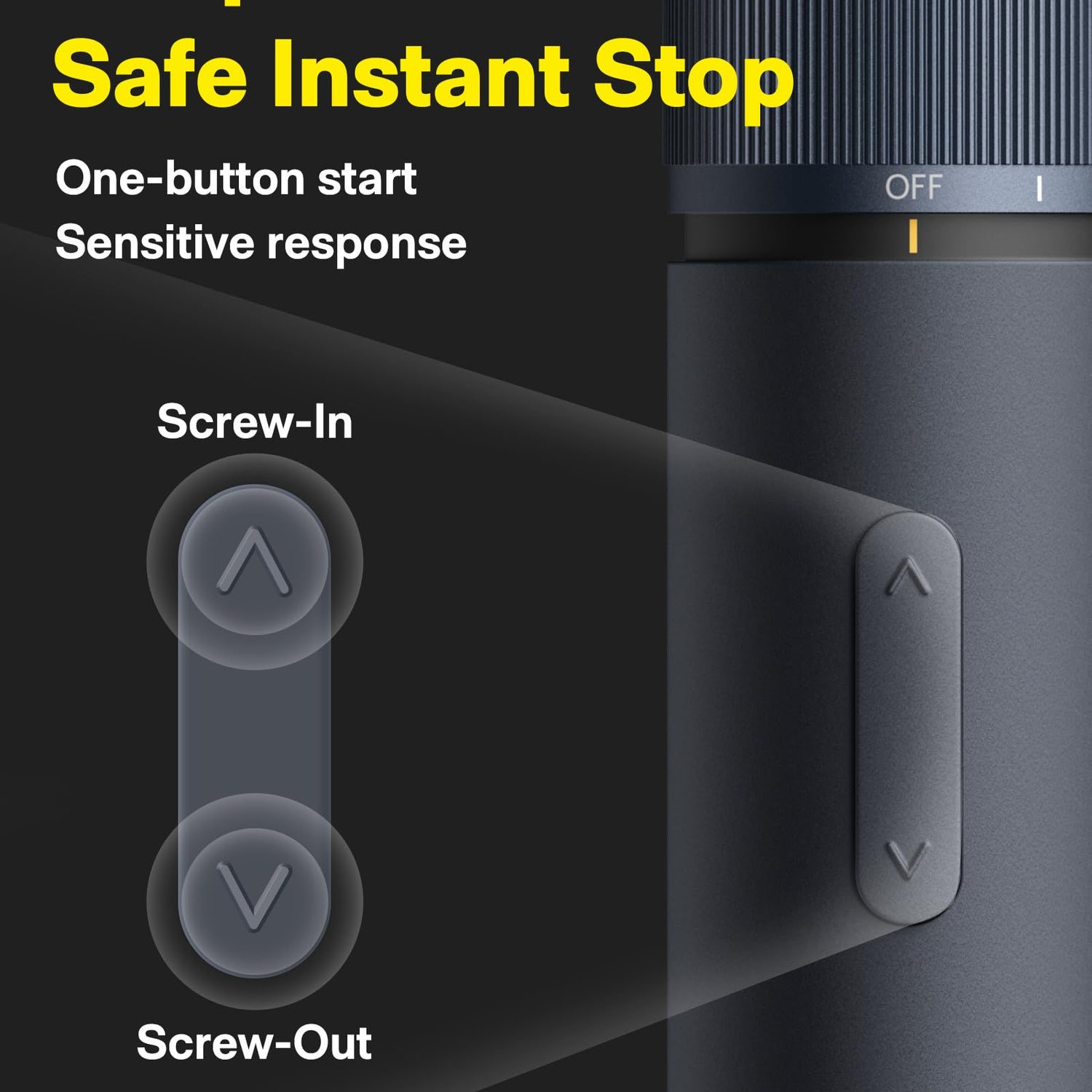 - ONE-HAND POWERHOUSE, TOTAL CONTROL - With our mini drill, you get three torque settings in the palm of your hand. (electric mode: max. 4 N·m / manual mode: max. 8 N·m). And that built-in smart sensor? It's your guardian angel. Release the button, the rotation stops—no scratched screws, no injured fingers. Just one hand and you're in complete control!