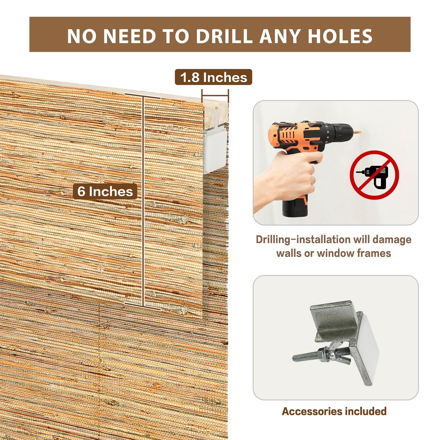- ③No Drill Type(Only applicable for inside mount): No need to drill any holes on your window frame, suitable for rental housing that is unwilling or not allowed to drill holes on the wall. Easy to Install with no tools-no drill, screws, or brackets. Suitable for various walls, such as wooden walls, marble tiles, concrete walls, and rough tiles