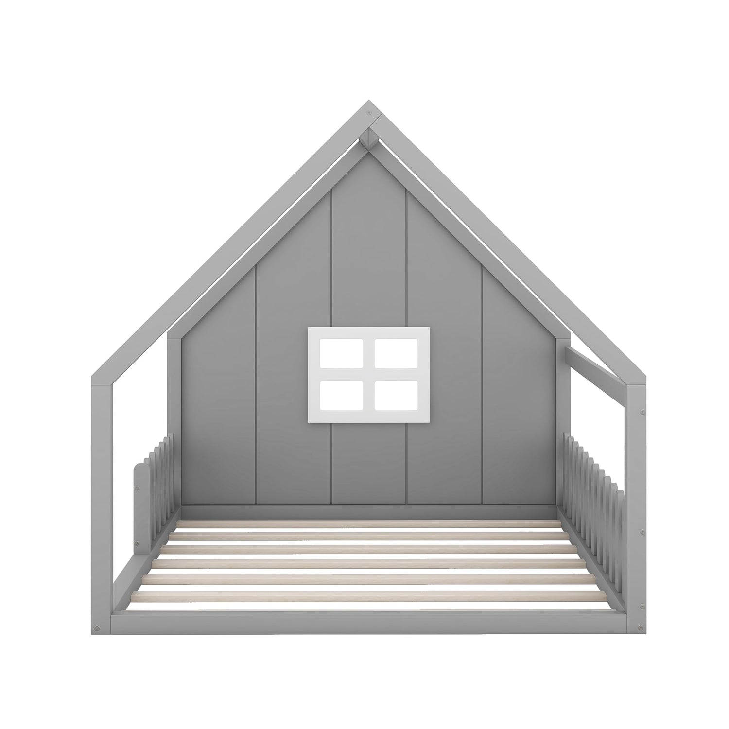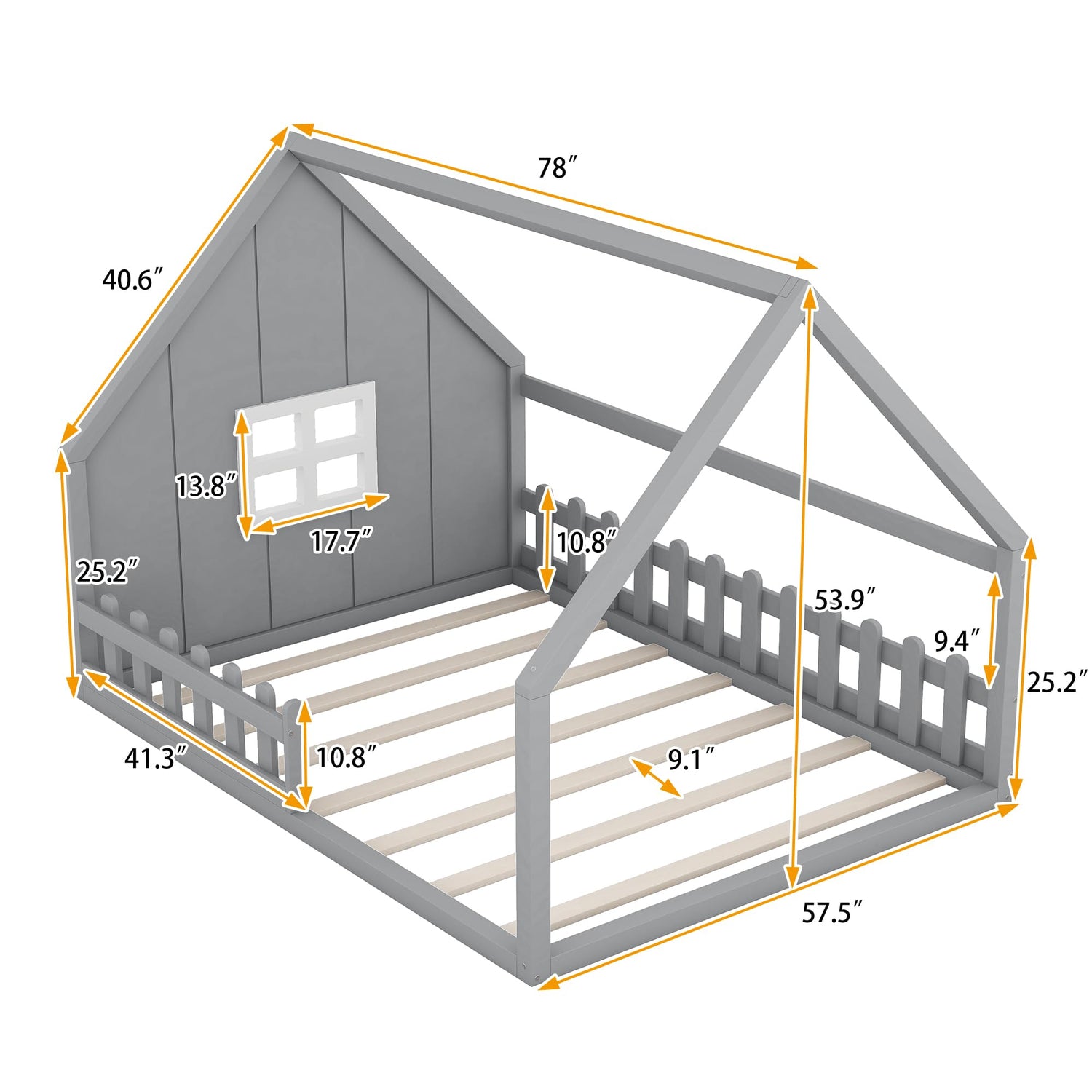 Bellemave Full Size Montessori House Bed with Slatted Railings in Grey