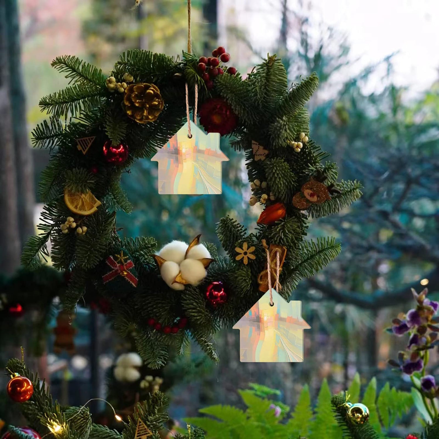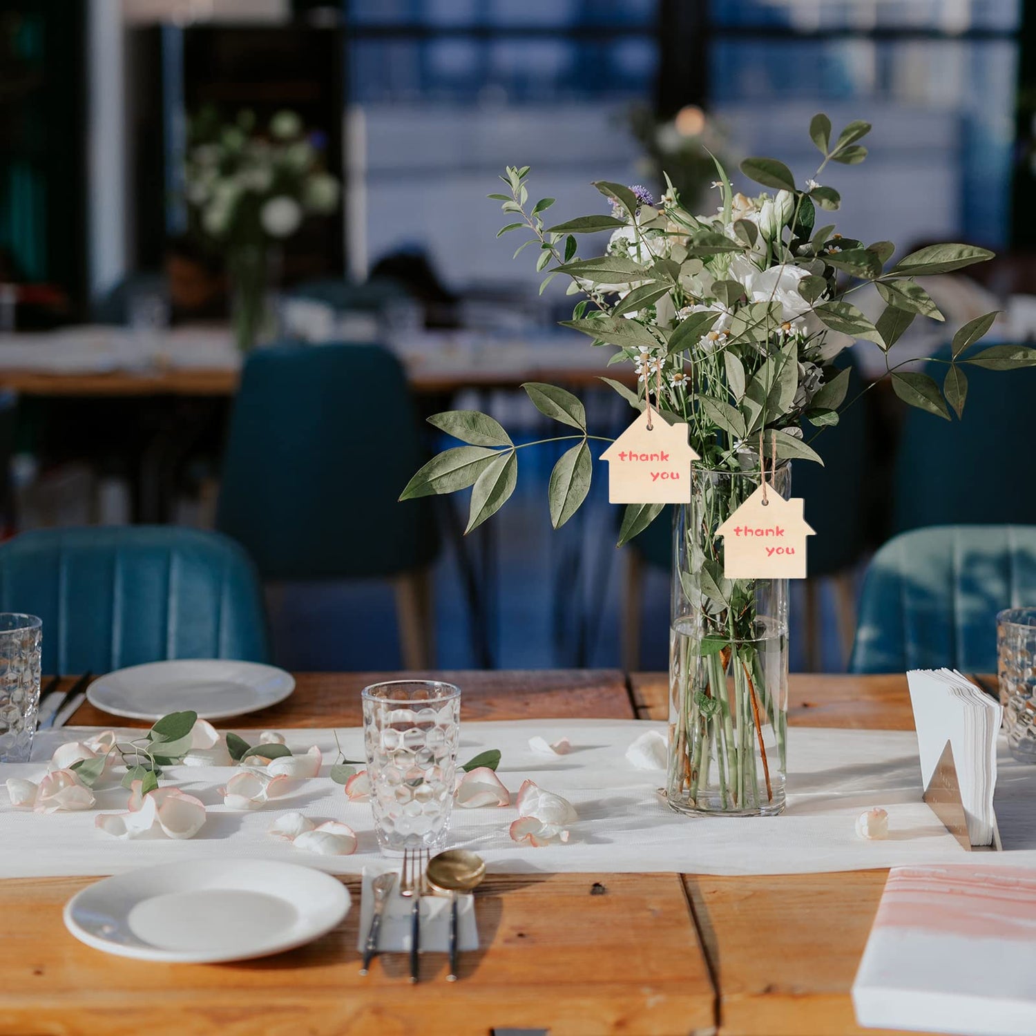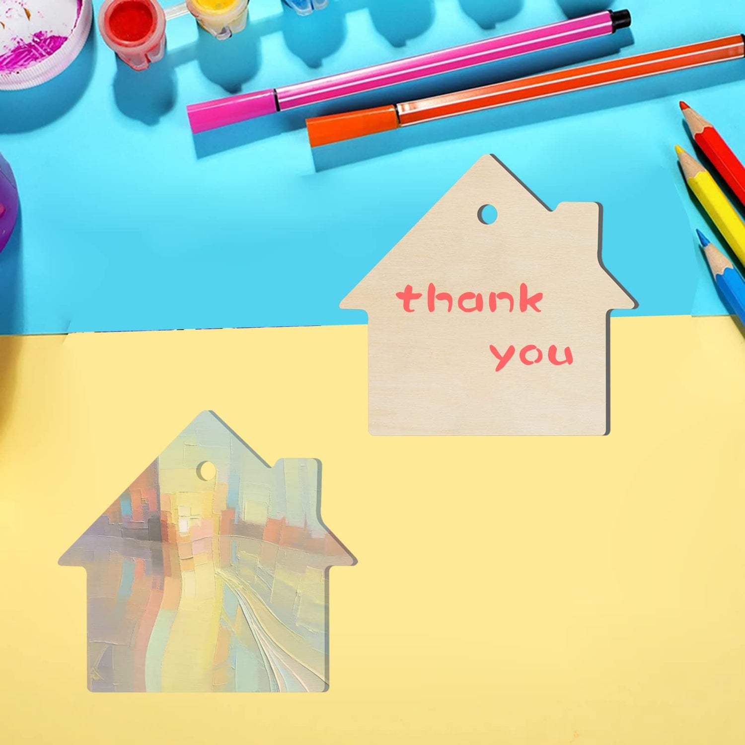 House Shape Hanging Wood House Unfinished Wood with Twines DIY Craft Ornament for Christmas Wedding Birthday Thanksgiving Party Decoration 20Pack