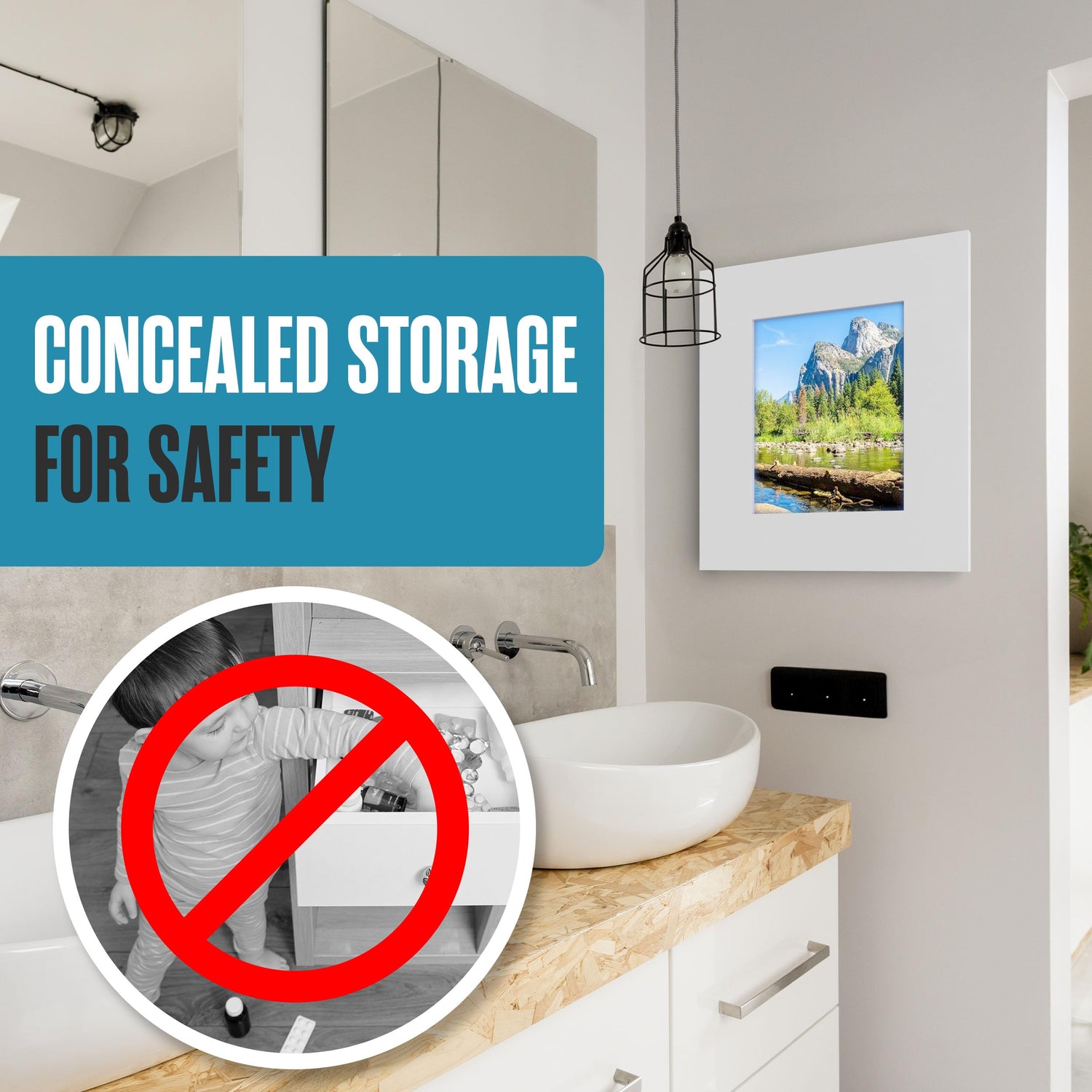 - HIDDEN MEDICINE CABINET - Designed to be unassuming, this recessed bathroom medicine cabinet offers an elegant solution to keep your items secure and out of sight, perfect for maintaining privacy and preventing access from children or unwelcome guests.