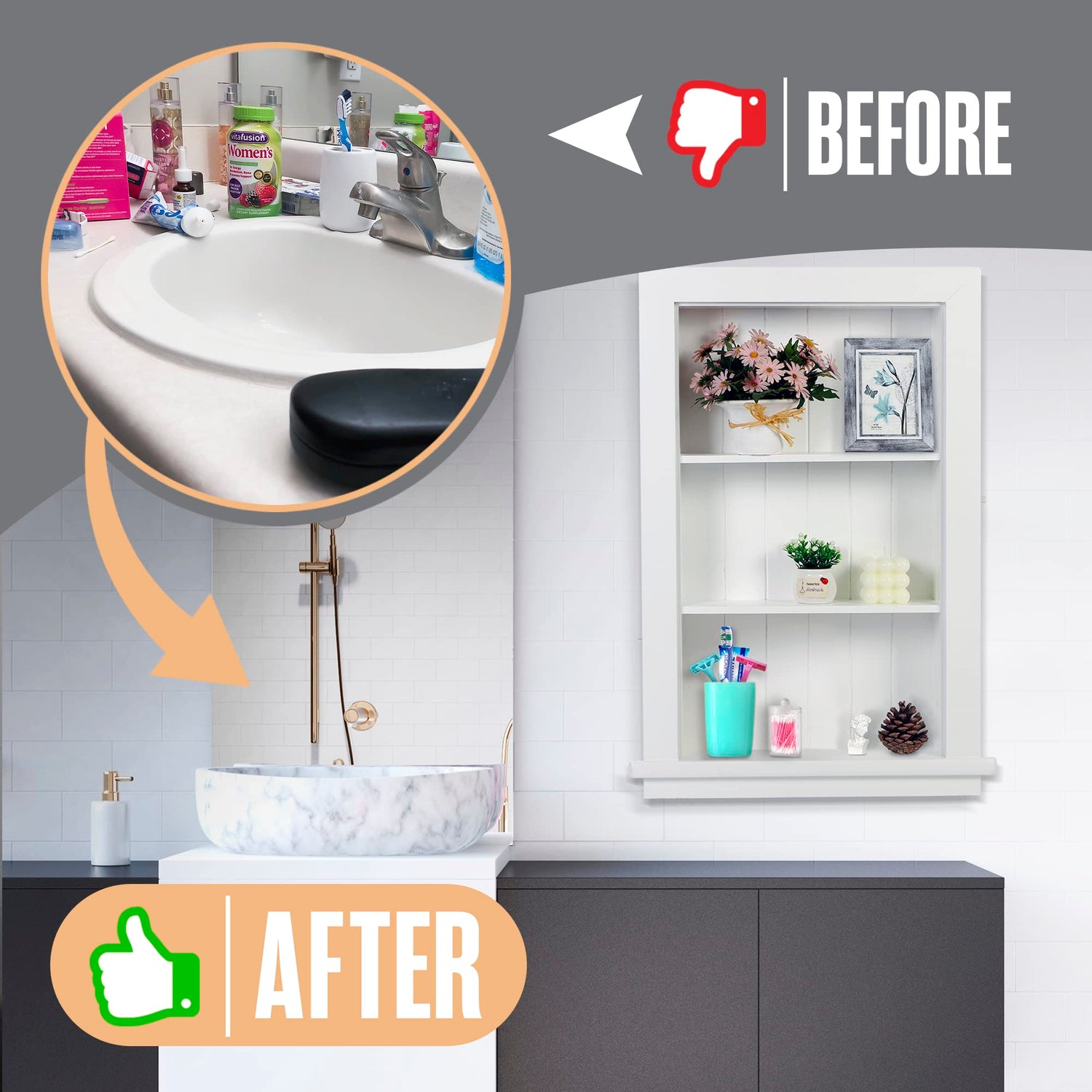 - MAKE IT YOUR OWN: Our wall niche insert for drywall can be installed wherever best suits your needs. Create a unique level of style in the bedroom, den, living room, kitchen, or bathroom with our recessed shelves!