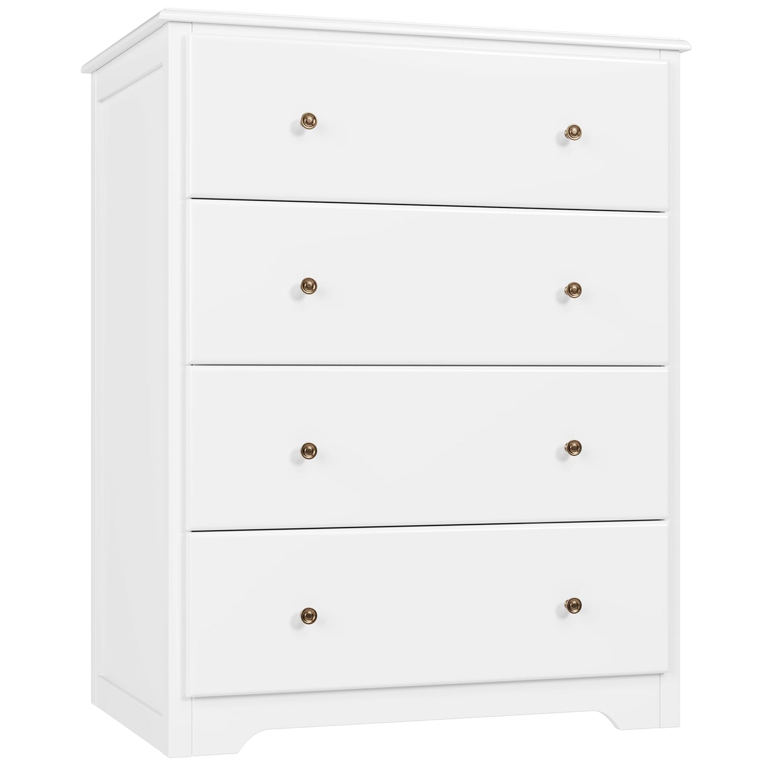 HOUSUIT White Dresser, 4 Drawer Dressers Chest of Drawers, Modern Tall Dresser, Wood Drawer Chest Storage Cabinet for Living Room, Hallway, Entryway, Home Office, Ivory White
