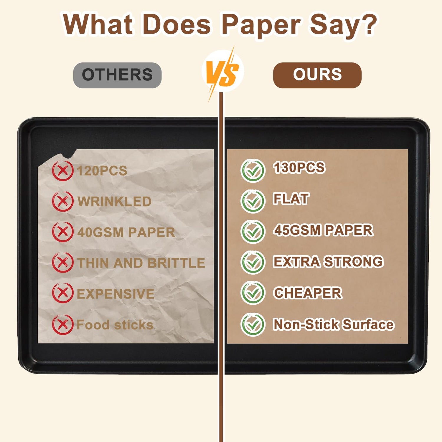 Hovico 130PCS Parchment Paper Baking Sheets, 12x12 Inch, Precut Non-Stick Parchment Sheets for Baking, Grilling, Air Fryer, Steaming, and More (Unbleached) - Perfect for BBQ, Picnic, Festival, Bread