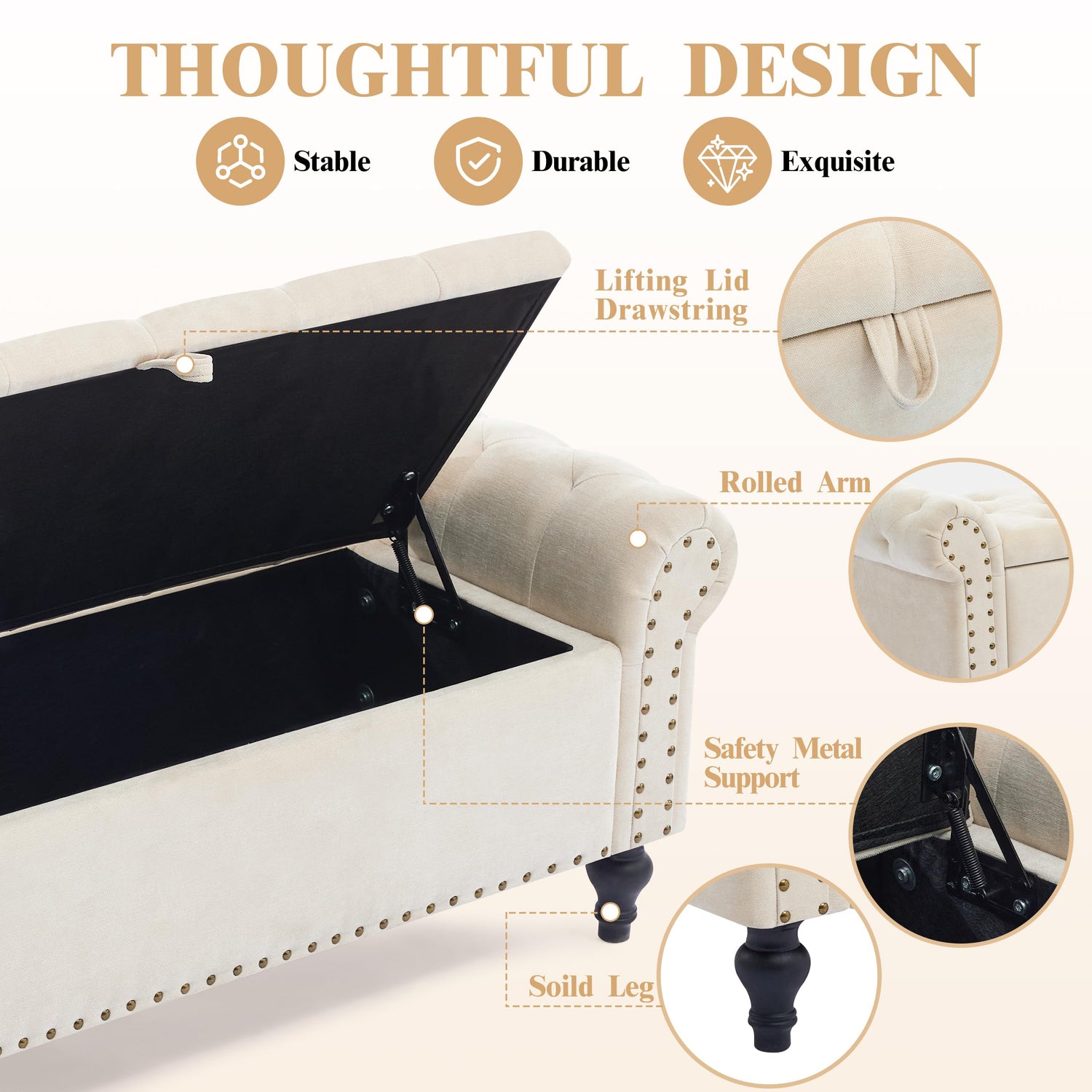 - STYLISH & ELEGANT DESIGN: This end of bed storage bench combines modern minimalism with refined decorative details, featuring button tufting, and rolled arms accented with nail head trim. Its sophisticated look adds a touch of elegance to your room