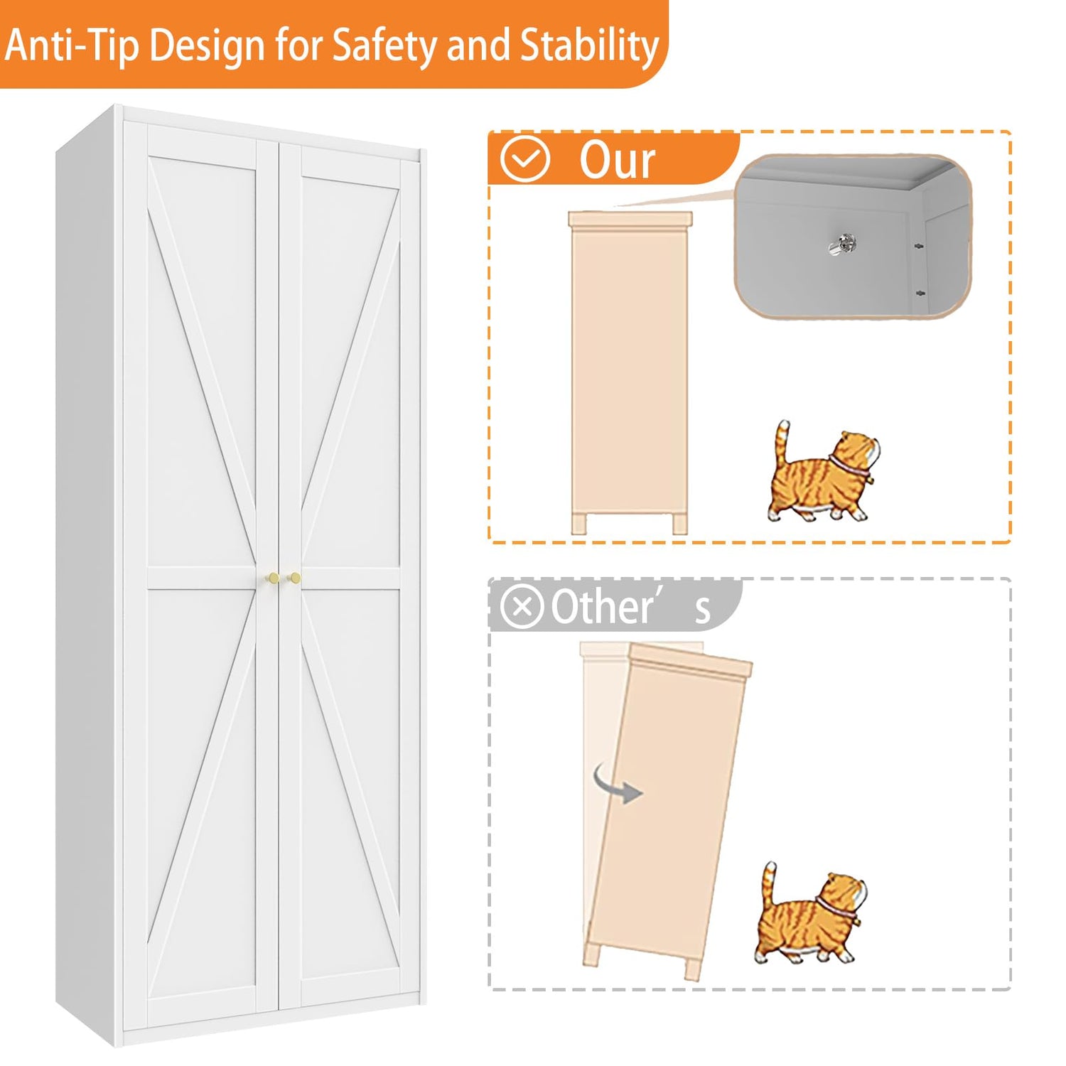 - All-matching Farmhouse Elegance: Our tall kitchen pantry cabinet features a sleek rectangular silhouette with 2 classic barn doors, making it a perfect fit for any decor style, whether in the bathroom, living room, kitchen, or dining room. Organize your belongings while adding a touch of contemporary elegance to your living space.