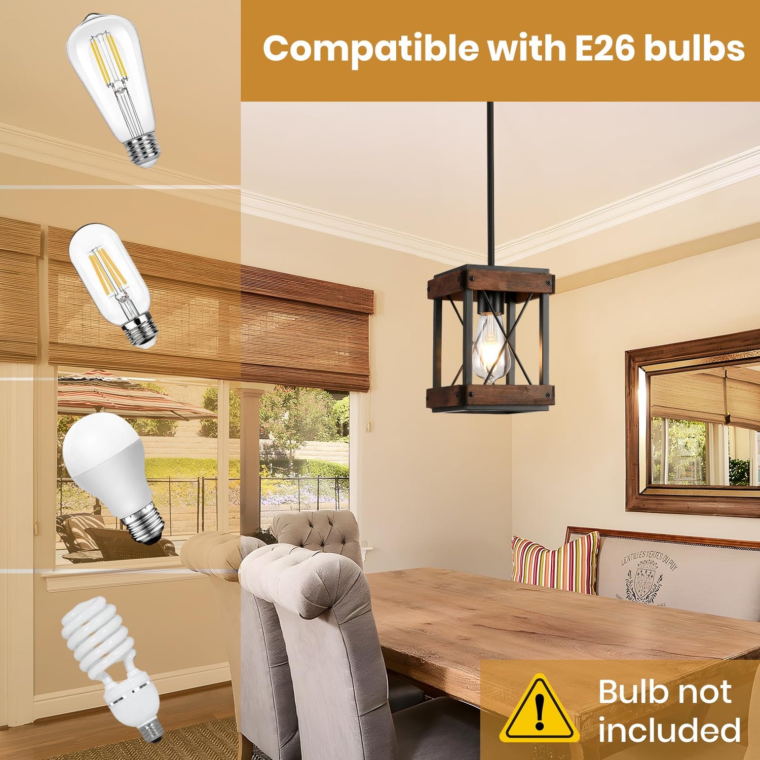 - 【Hanging Light Fixture Dimension】 Kitchen Island Pendant Light fixtures's dimension: 8.7"x 6.3", canopy is 4.7"W x 0.98"H. The wood pendant lights kitchen island total length is 48.7", Input Voltage: 110V; Bulb Socket: E26; Material: wood & metal.