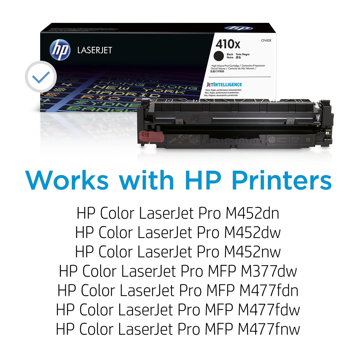 HP 410X Black High-yield Toner Cartridge | Works with HP Color LaserJet Pro M452 Series, HP Color LaserJet Pro MFP M377, M477 Series | CF410X