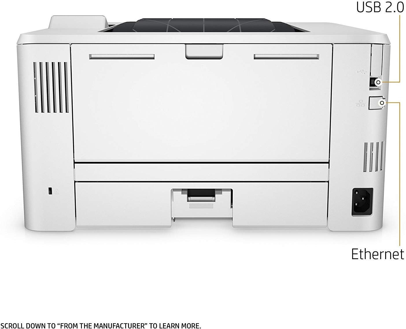 - This printer is Ethernet (wired networking) or USB only. Need wireless? Select the 402dw model.