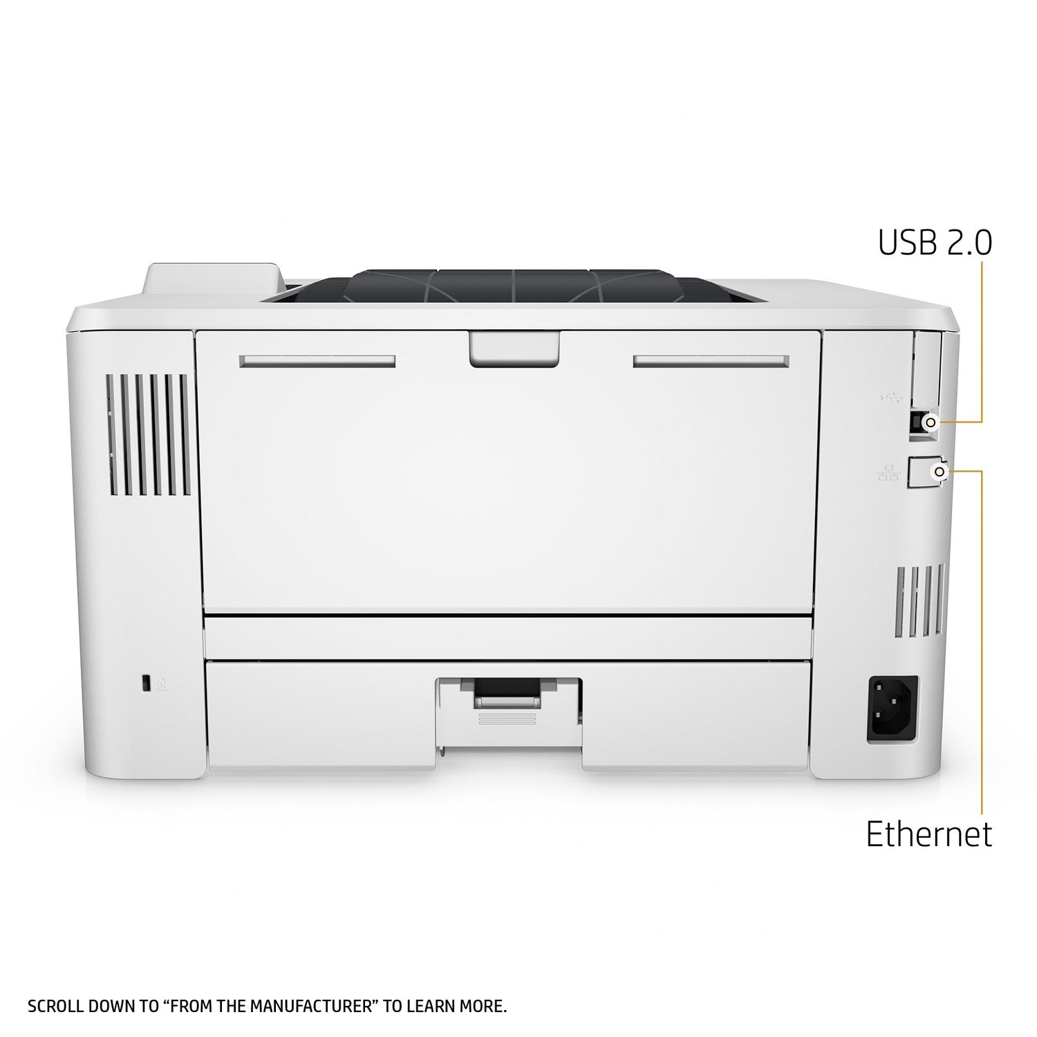 - This printer is Ethernet (wired networking) or USB only. Need wireless? Select the 402dw model.