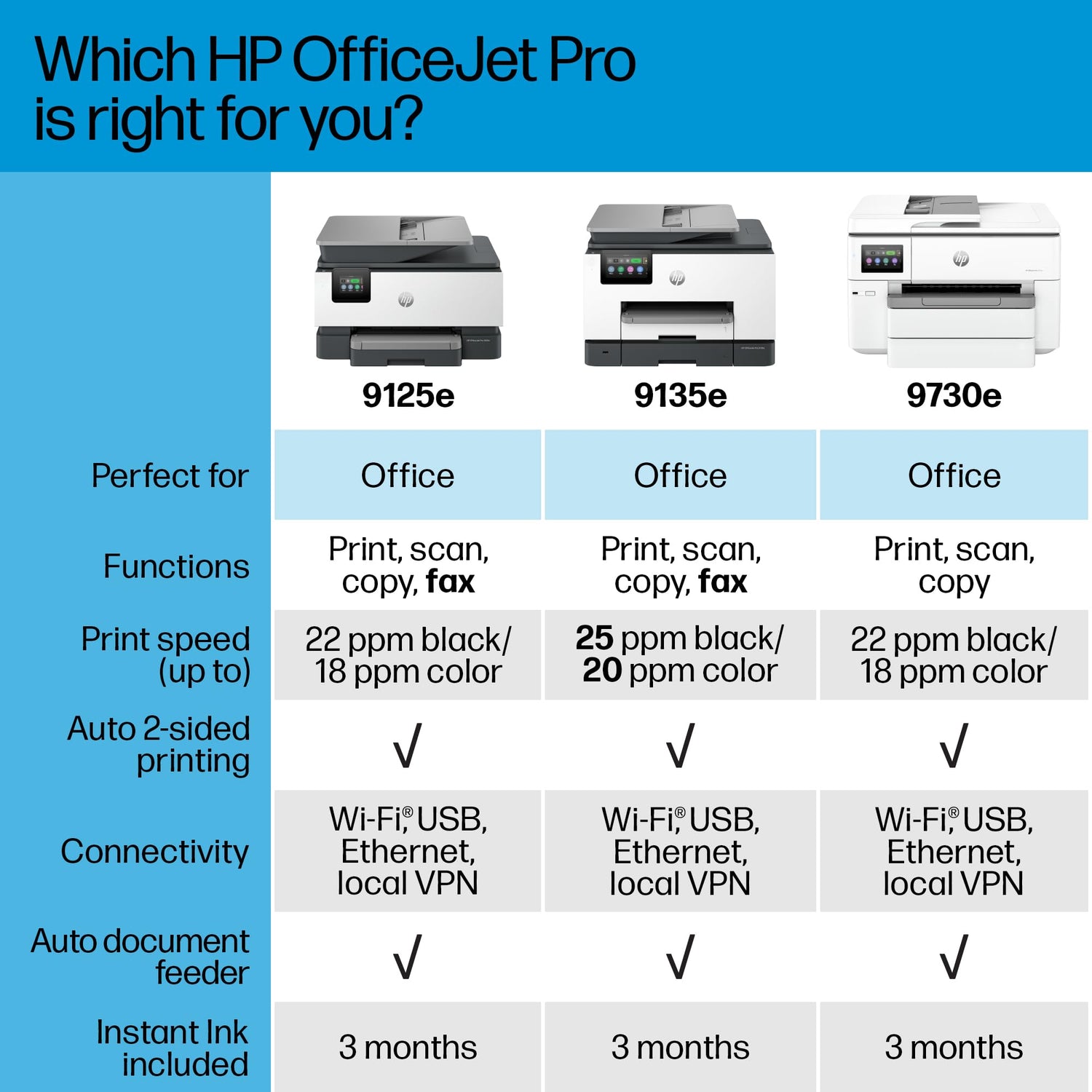 HP OfficeJet Pro 9730e Wide Format Wireless All-in-One Color Inkjet Printer, Print, scan, Copy, ADF, Duplex Printing Best-for-Office, 3 Months of Instant Ink Included (537P6A)