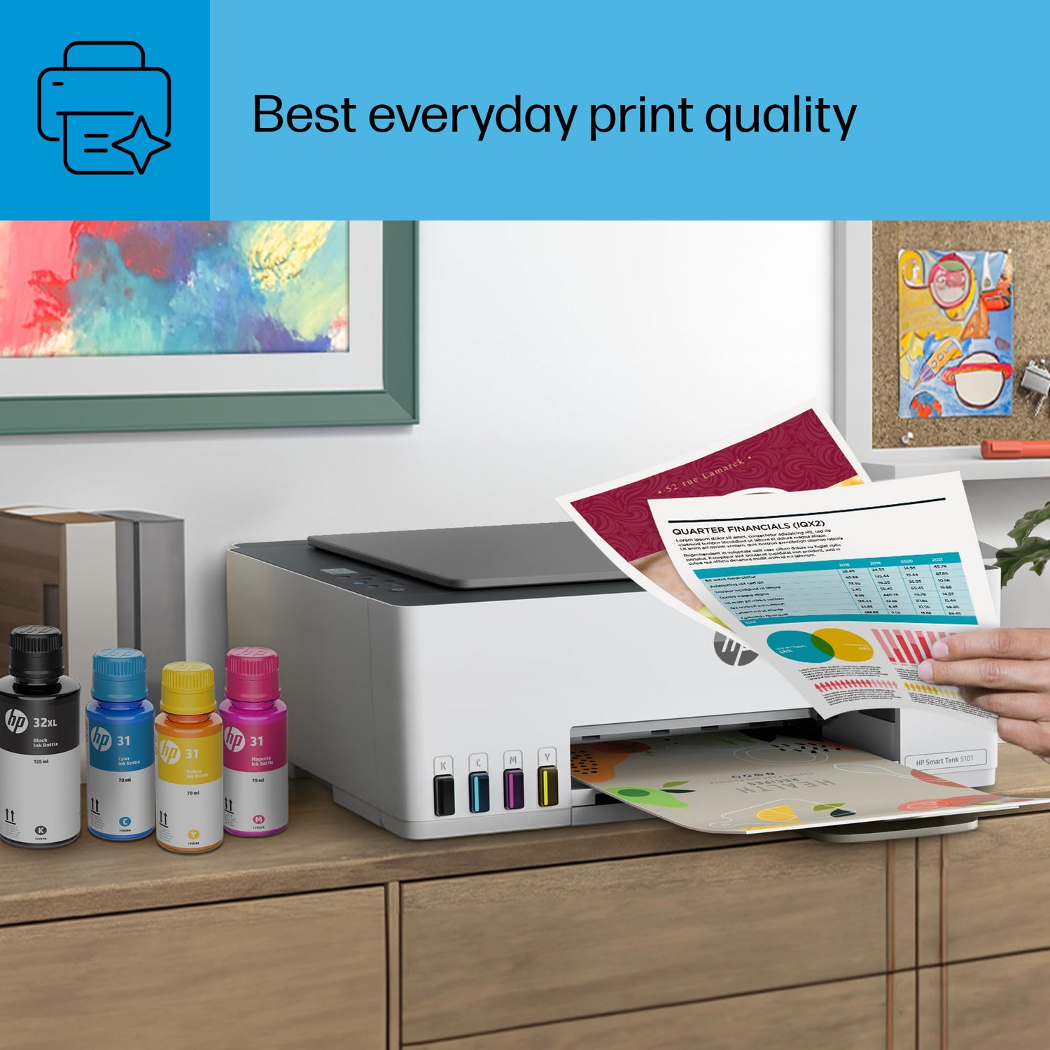 HP Smart Tank 5101 Wireless All-in-One Ink Tank Printer with 2 years of ink included,Print, scan, copy, Best-for-home, Refillable ink tank (1F3Y0A)