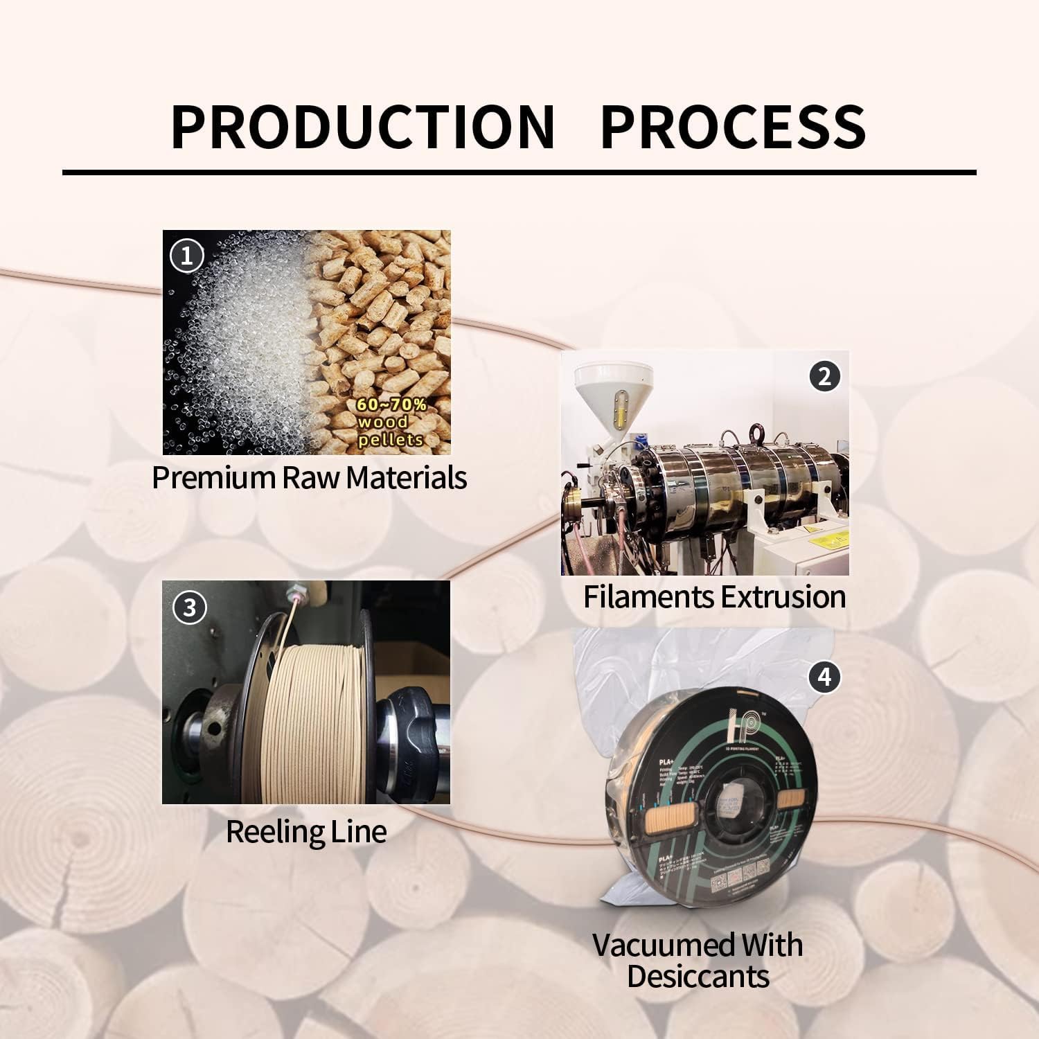 - 【Toughness Enhanced PLA Filaments】--- HP3DF wood filament is made with 100% Pure USA PLA raw materials and healthy organic colour powders. Optimized printing quality and superb layer bonding meeting your demands for printing projects of functional parts with higher toughness.