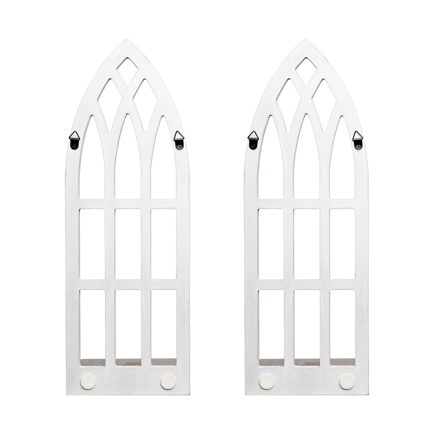 HPC Decor Candle Sconces Wall Decor Set of 2- Handmade Wall Sconce Candle Holder- White Window Shape Wood Wall Home Decor- Farmhouse Wall Decorations for Living Room, Bedroom, Bathroom, Dining Room