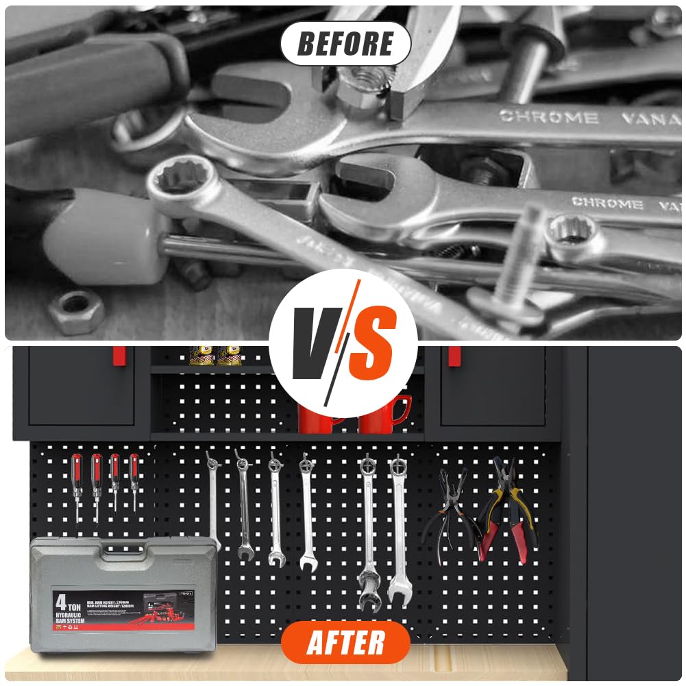 - Practical Pegboard: It's compatible with standard 1/4-inch and 1/8-inch pegboard hooks, bins, and accessories, offering flexibility in organizing various tools