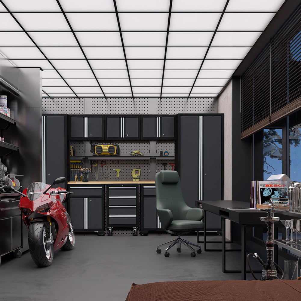 HPDMC 9-Piece Steel Garage Storage Cabinet System with Wooden Work Top, 130 in. L x 18 in. D x 76 in. H Assembled Workshop Chest Cabinet Set in Charcoal Gray