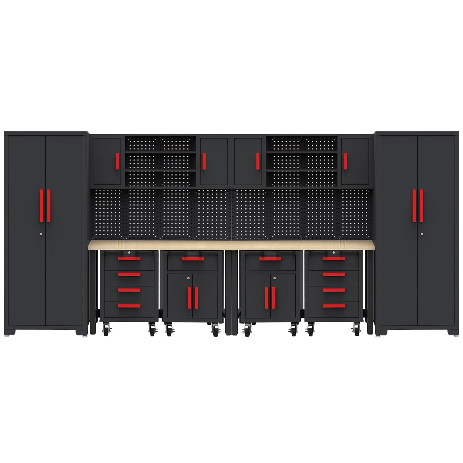HPDMC Garage Storage Cabinet System - 2 * 6-Pcs Workshop Set with Steel Cabinet Drawers, Rolling Chest, Workbench, Pegboard for Tool Organization