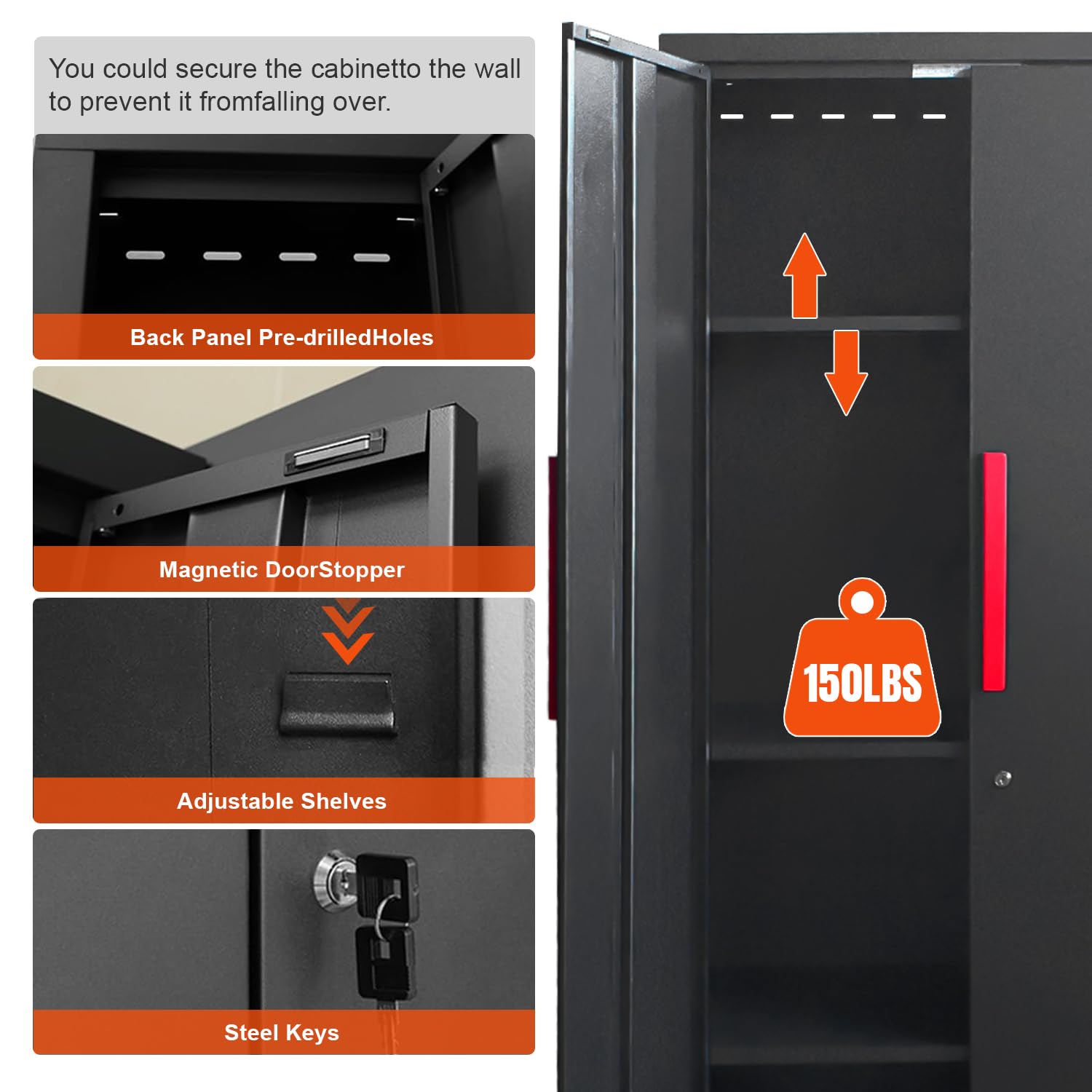 - Adjustability: The adjustable shelves can be positioned at different heights based on your storage needs. Each shelf in the cabinet is capable of bearing up to 150 pounds of weight