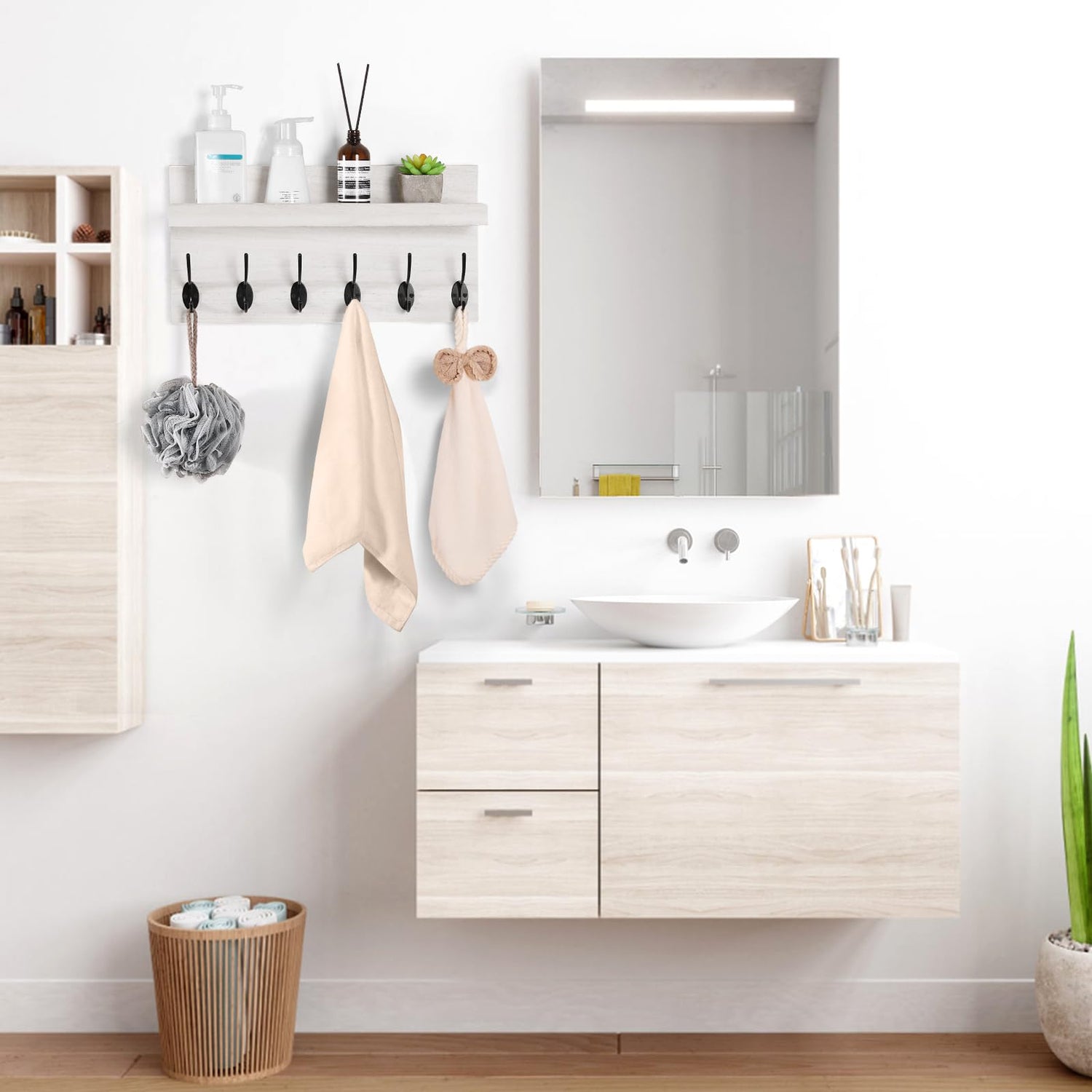 HRONRAD Shelf with Hooks, Coat Rack Wall Mount with 6 Double Metal Hooks, 17 Inch Farmhouse Wall Hooks with Shelf for Entryway, Bathroom, Kitchen, White