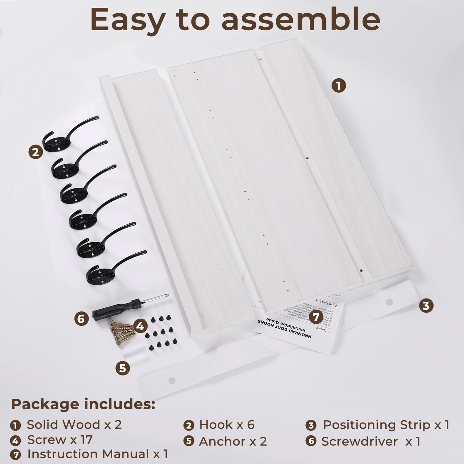 - Versatile Storage Solution: With six double hooks, our coat hooks wall mount is perfect for hanging a variety of items such as jackets, backpacks, keys, towel, clothes, dog leashes, and more. The heavy load capacity of each hook is up to 8lbs ensures that your belongings are securely held in place.