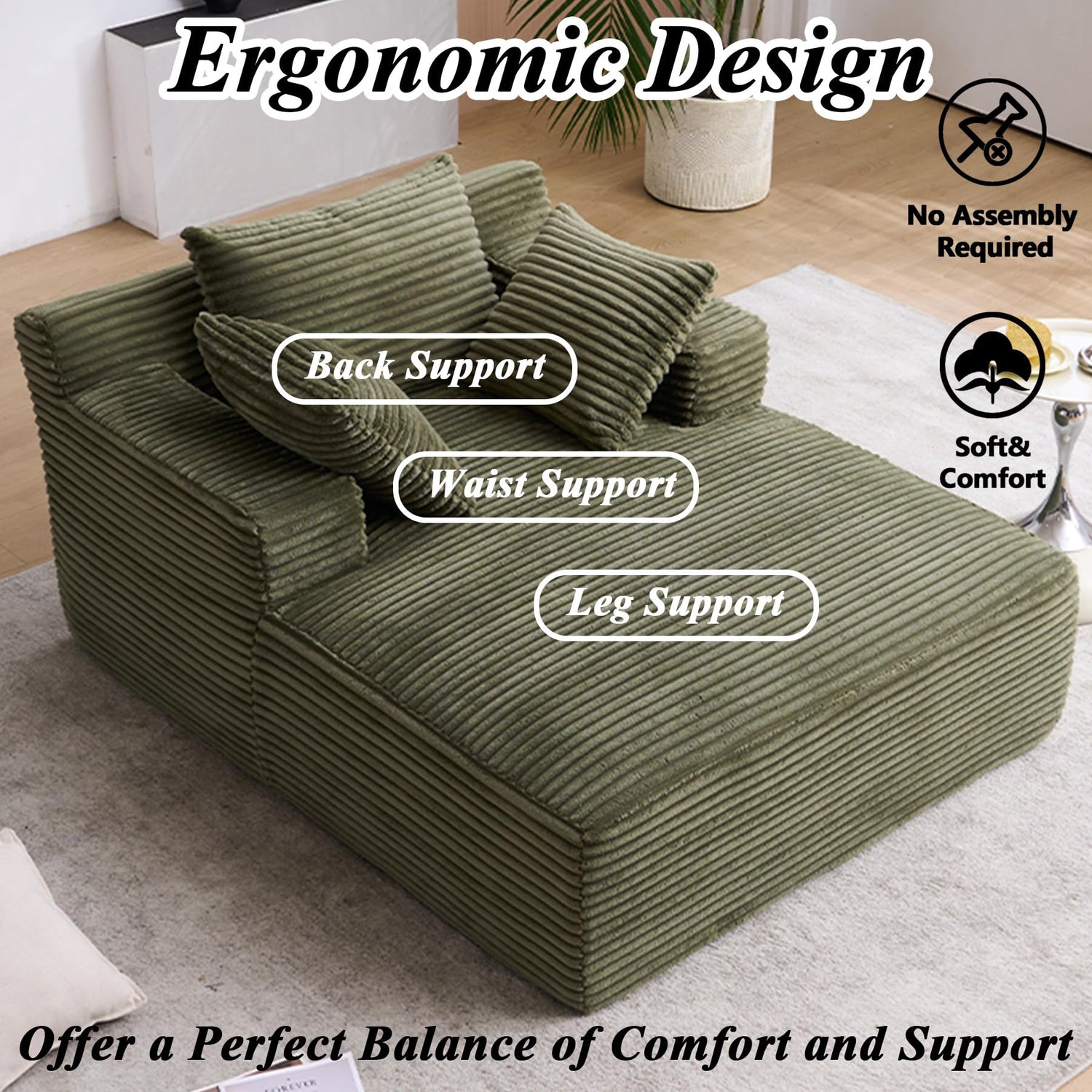 HRVEOCEI 49" Chaise Lounge Indoor, Oversized Chaise Lounge Chair with 3 Comfy Pillows for Living Room Bedroom, Wide Arms Corduroy Fabric High-Density Foam No Assembly Required (Sage Green)