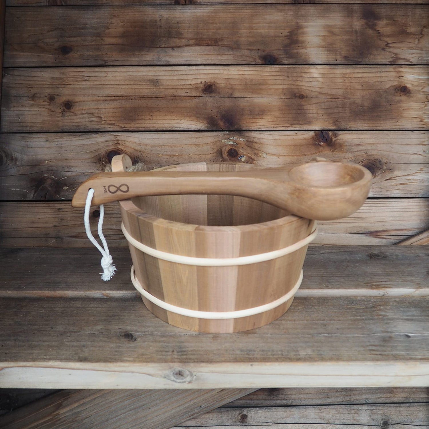 - ELEGANT CURVE - This ladle has an elegantly curved handle and is hewn from a single block of cedar wood, measuring 14" in length. Sold separately here from our HSE Sauna Bucket if you need only a ladle for your existing bucket or other purpose.