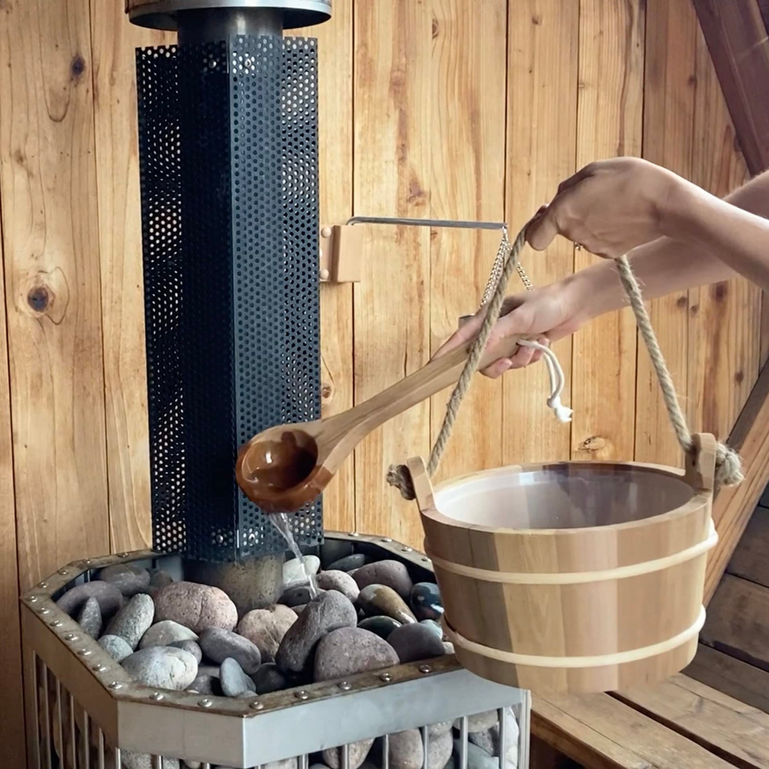 - QUALITY CEDAR WOOD - Made entirely with beautiful and aromatic Canadian red cedar wood, the traditional wood of choice in saunas.