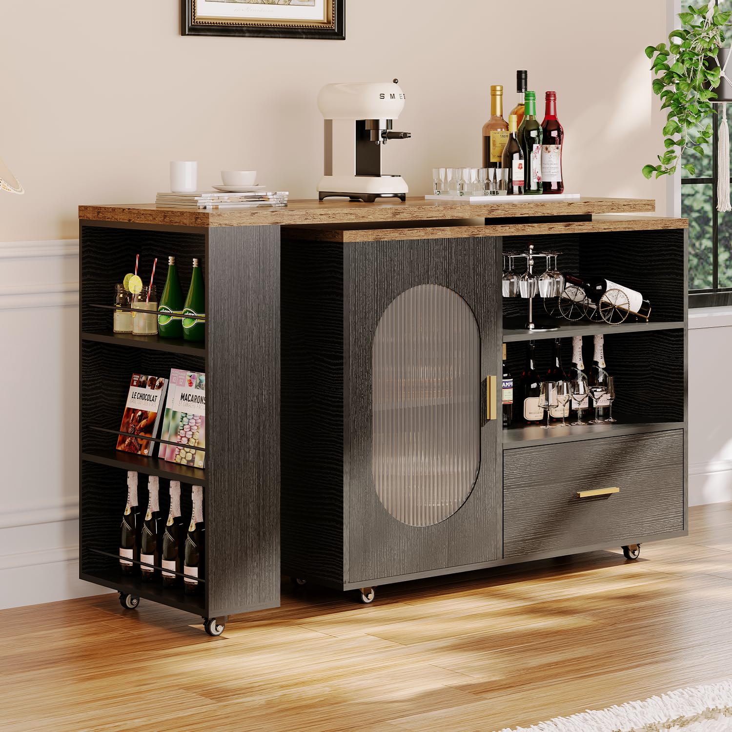- Easy Mobility and Secure Parking : Mobile kitchen island cart on wheels with 7 smooth, floor-friendly casters — 4 lockable with a simple up/down motion. Easily move it for cleaning or gatherings, then lock it securely in place for stability in your dining room, kitchen, or home bar.