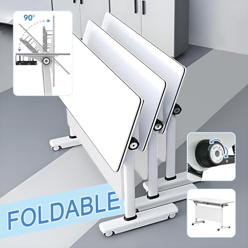 HSHBDDM Folding Conference Table with Flip-Top Design, Locking Wheels & Sturdy Metal Frame, Modular Training Desk for Office, Meeting Room, Classroom & Home Workspace