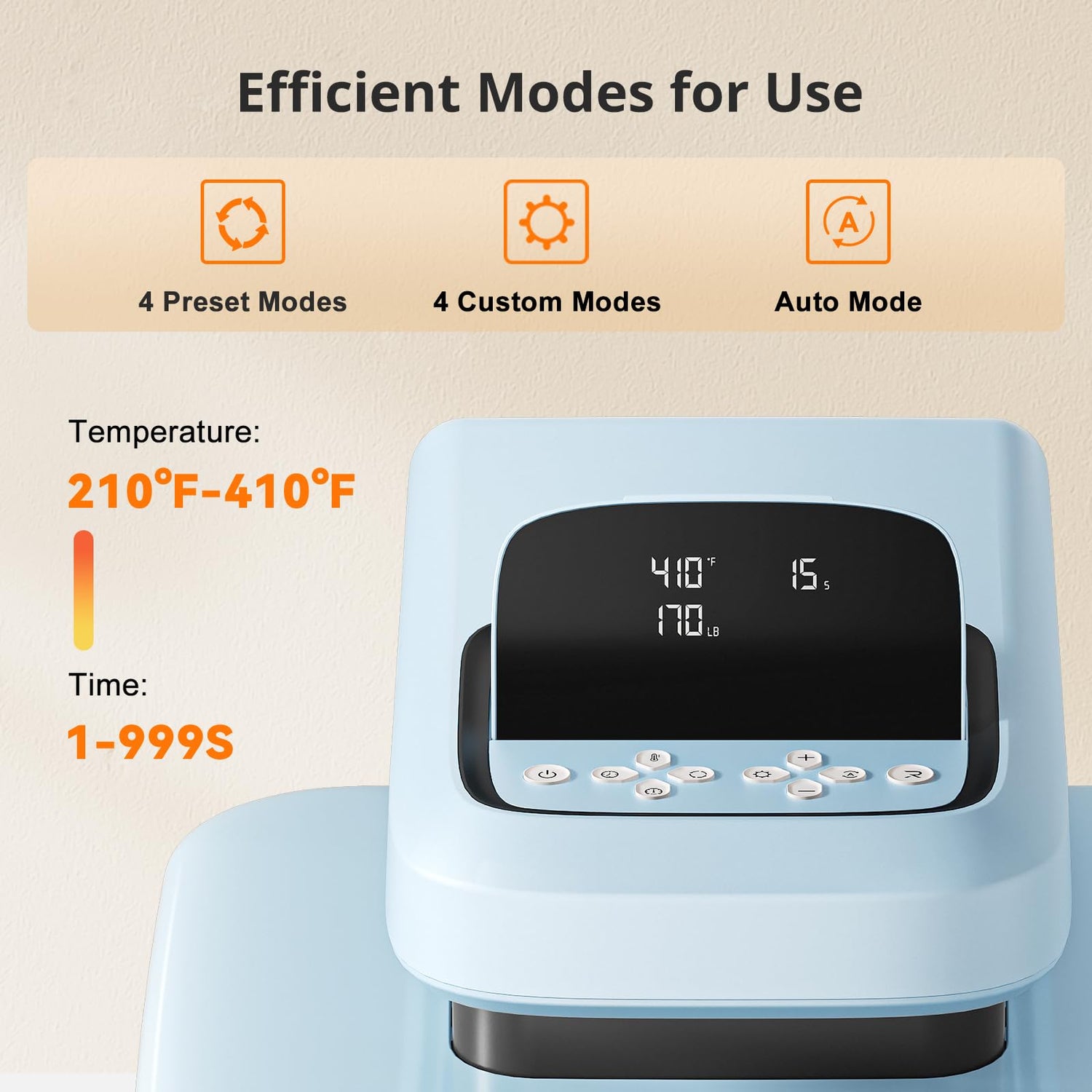 - 【0-75° Adjustable Screen & Pre-set Parameters】This heat press machine's intuitive display provides real-time feedback on your pressing progress, allowing you to monitor temperature, pressure, and timing with ease. Its auto heat press ergonomic design ensures that you can view the screen comfortably. Built in 4 preset & 4 custom parameters for various materials, automatically set after selecting materials, even during extended crafting sessions