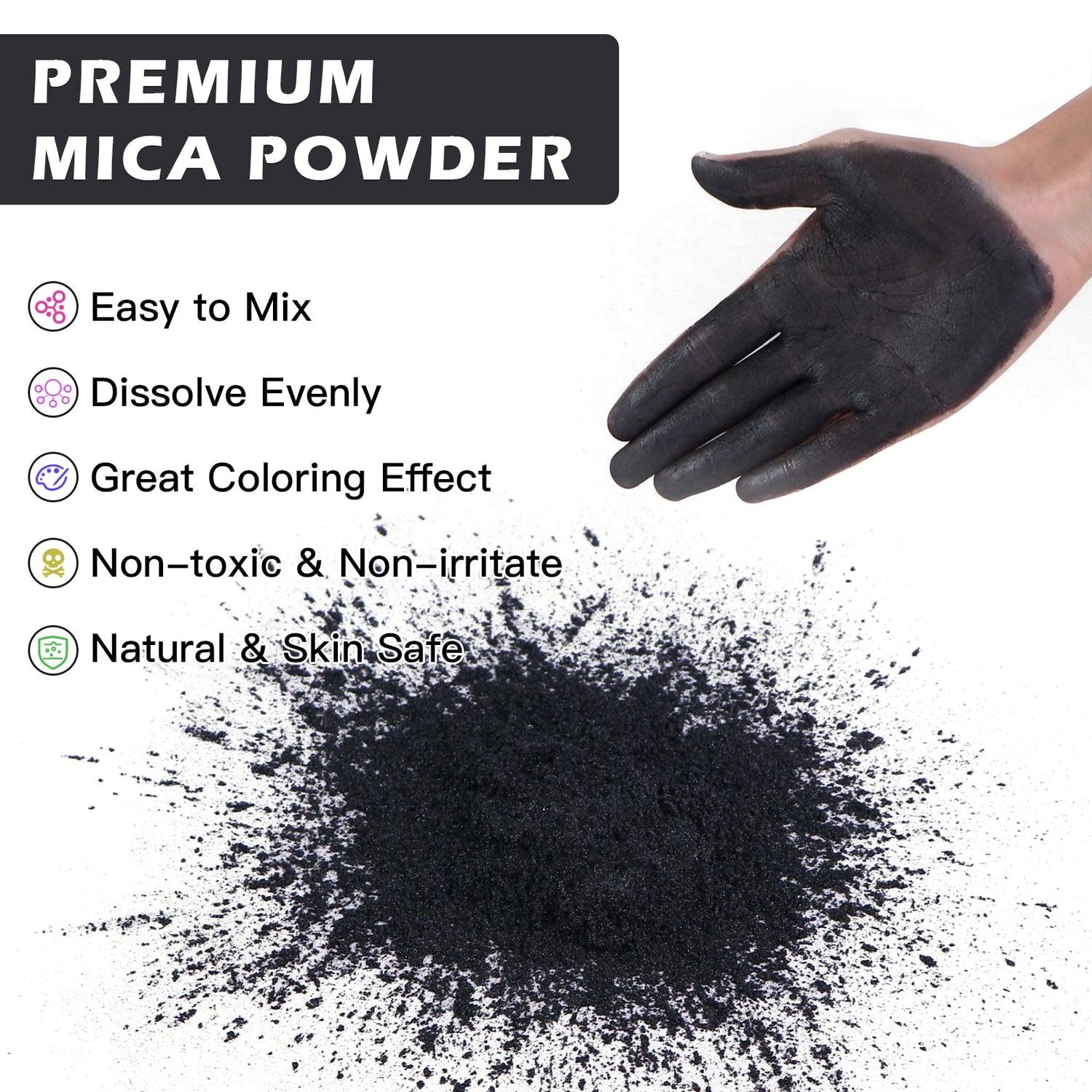 - 🌟【LARGE CAPACITY CLASSIC BLACK MICA POWDER】: Are you tired of constantly buying mini packs of mica pigment powder? HTVRONT offer you 3.5 oz/100g large capacity shimmer mica powder, which is huge enough for almost any size project and can meet your long-term use needs. Classic black epoxy pigment makes your arts more textured. Come to join us and share your creative handicrafts made with HTVRONT mica powder pigment.