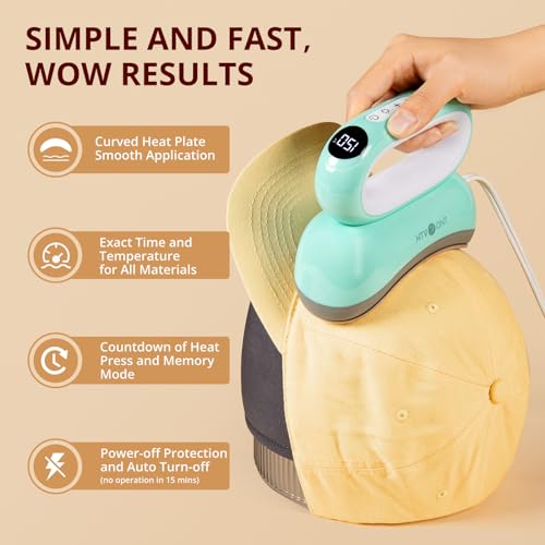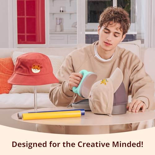 - 【Making Pro Hats at Home Easily】 No more worrying about how difficult it is to decorate your hat, HTVRONT hat heat press provides you with more convenience in terms of operation, size (15.52*6.78*12.53cm) and weight (about 600g, easy to hold). This hat press is equipped with a digital display and an ironing pad, so anyone can decorate your hat easily and professionally.
