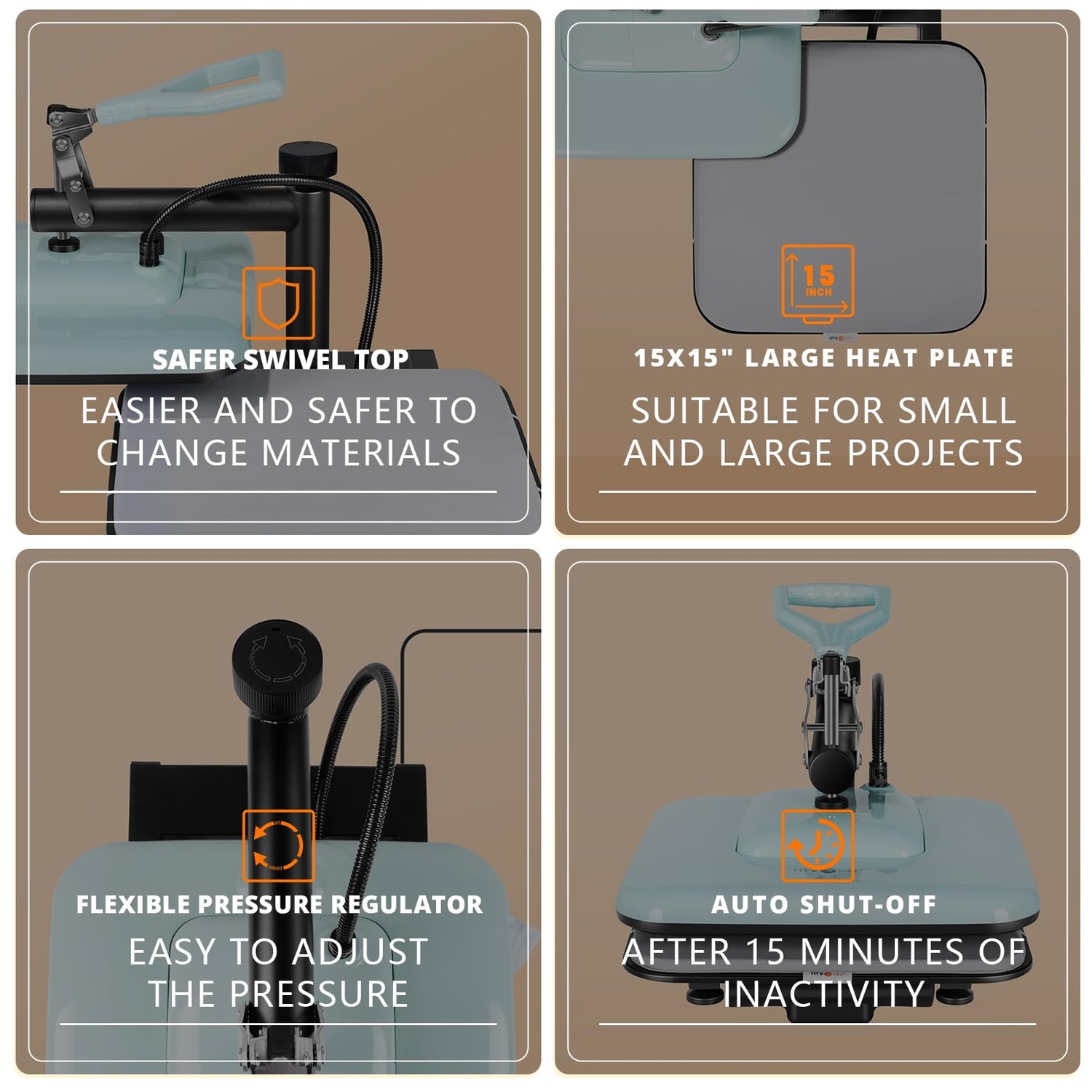 HTVRONT Heat Press Machine for T-Shirts, Heat Press 15 x 15 Professional Heats Up Fast & Distribute Heat Evenly, Swing Away T-Shirt Press Machine for HTV, Sublimation, Heat Transfer Projects (Blue)