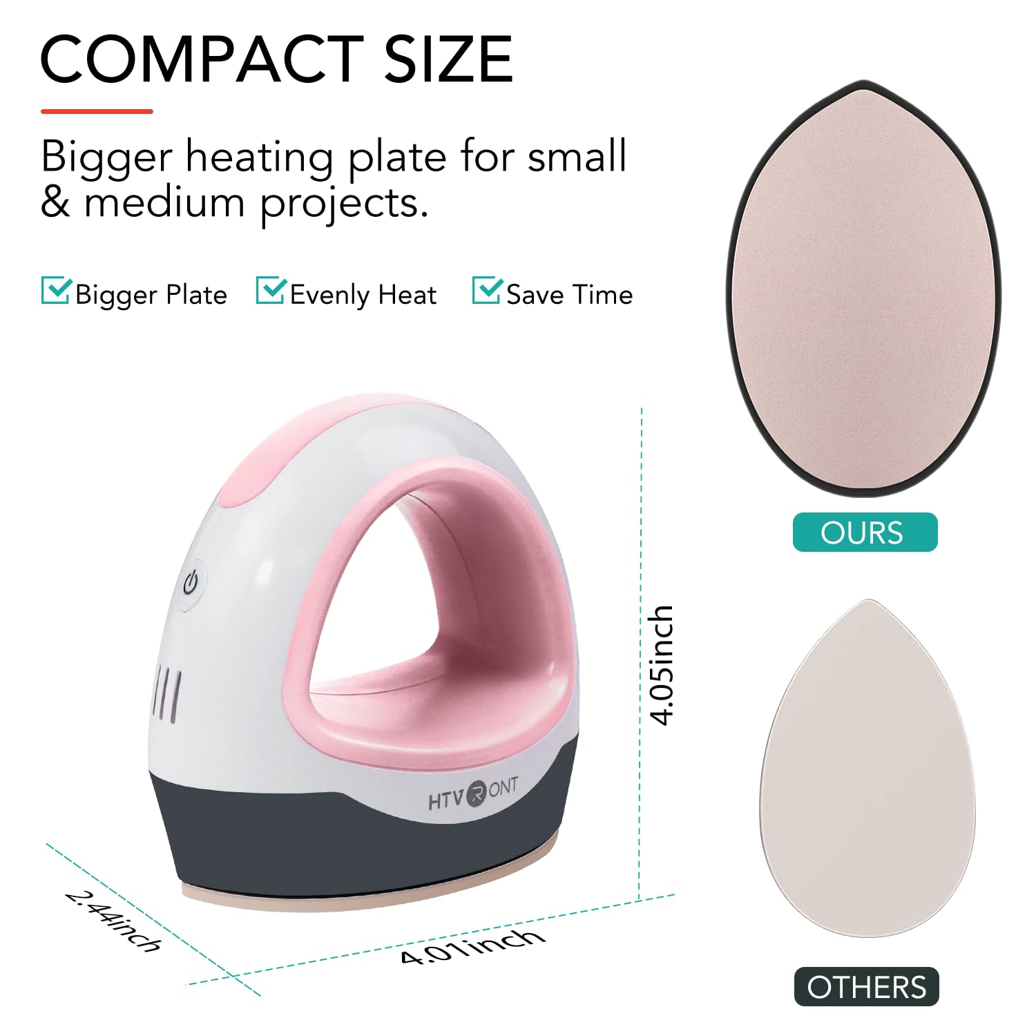 HTVRONT Heat Press Mini Iron for Crafting, Mini Heat Press Machine for T Shirts, Auto-Off Small Heat Press Portable Iron Press for Heating Transfer(Pink)