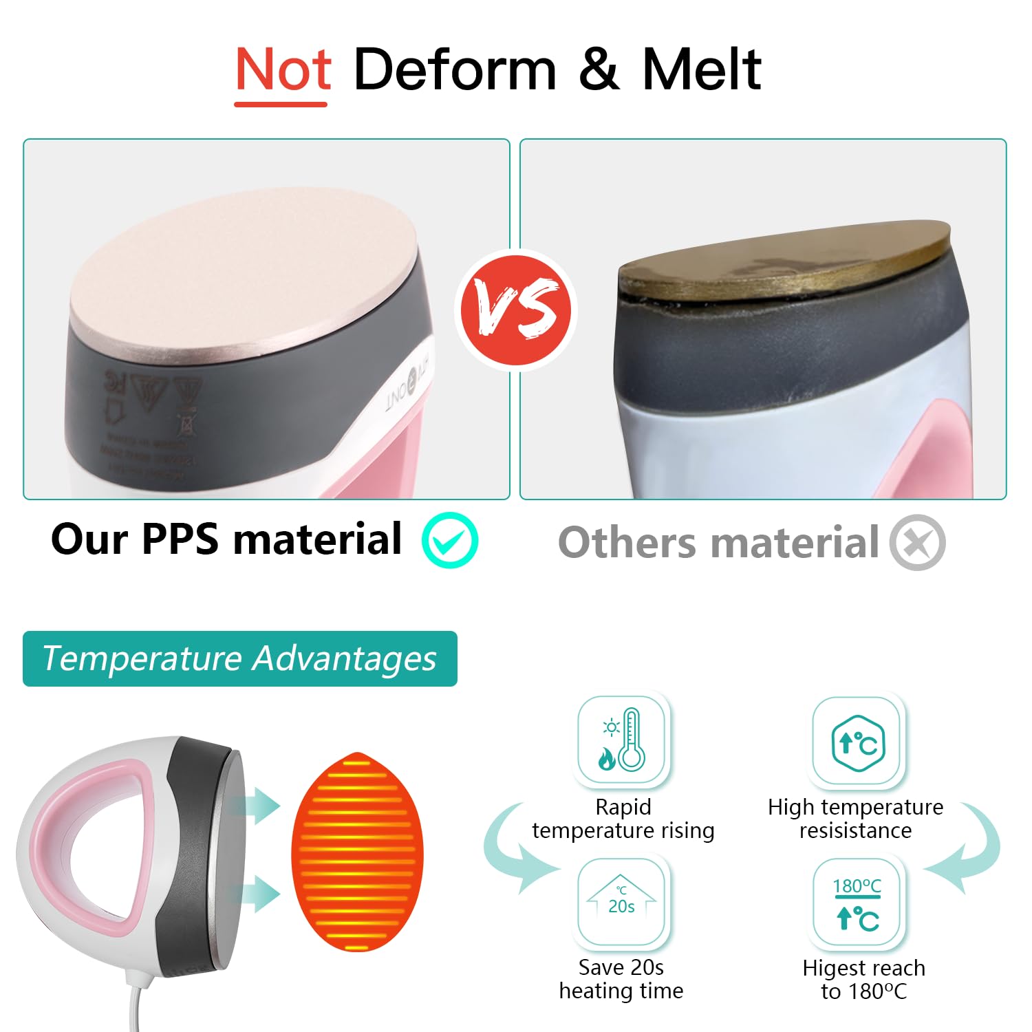 - 【FAST HEATING UP & DURABLE】 Using our small heat press will save you nearly 20 seconds of heat-up time compared with other brands. At the same time, Our heat press machine adopts durable and high-temperature resistant materials, and the maximum temperature can reach to 356°F (180°C). The soleplate is durable and high temperature resistant without deform & melt