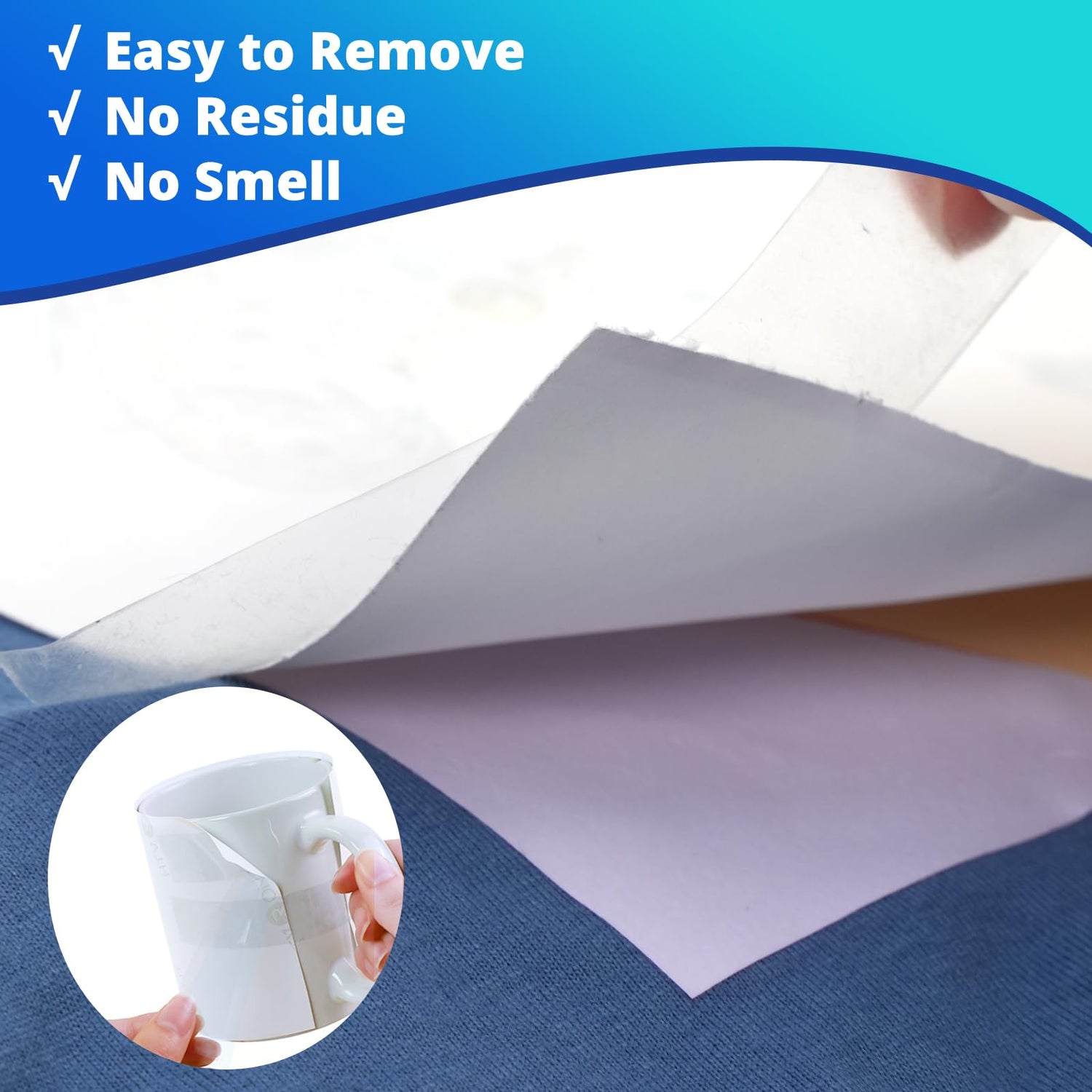 - 【EASY TO REMOVE & NO RESIDUE】:The sublimation tape is easy to stick, even uneven surfaces can be easily wrapped with the heat press tape. Set the correct temperature and time, you can easily peel off the heat resistant tape without tearing and does not leave any residue or smell on your tumbler or t-shirt after using the clear heat tape. WARM TIPS: You can try the sublimation tape on scrap material first