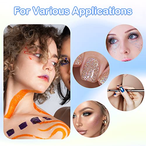 - 【Broad Application】 With this ultra fine Glitter Powder that can dot many scenarios, more and more innovative uses are found by craft lovers. You can use this fine glitter for resin to decorate resin projects, makeup, nails, hair, body art, cards, phone cases, tumblers, etc., also fabulous slime glitter. Perfect for enhancing the brilliance trenchancy of projects made of glitter powder.