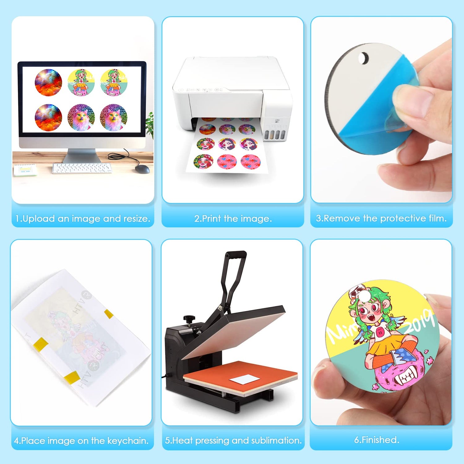 - 【Easy to Use】It's a breeze to achieve your amazing craft ideas on this sublimation blank keychains: just print and press. The sublimation keychains are covered by a blue protective film, which is much easier and more convenient to distinguish and tear off than other clear ones. (Note: Please tear off the protective film on the side that needs to be sublimated before pressing.) Transfer parameters: 180℃/356℉, 40-45 seconds