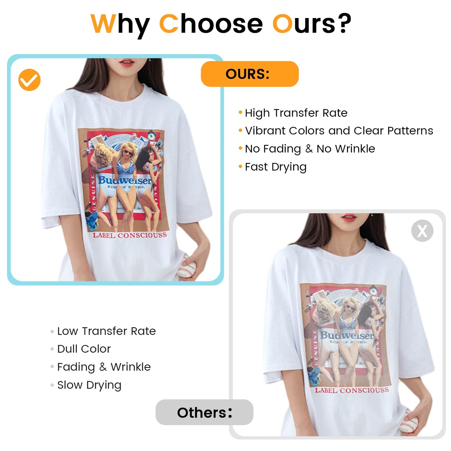 - Warm Tips - This sublimation printer paper for t-shirts is compatible with all inkjet printers, and only sublimation ink works;Our sublimation transfer paper suitable for light-colored polyester fabric, polyester-coated items, and material with cotton content≤30%;Please store the sublimation paper in a cool, dry area to avoid direct sunlight, heat, and humidity. The remaining must be put back into the box