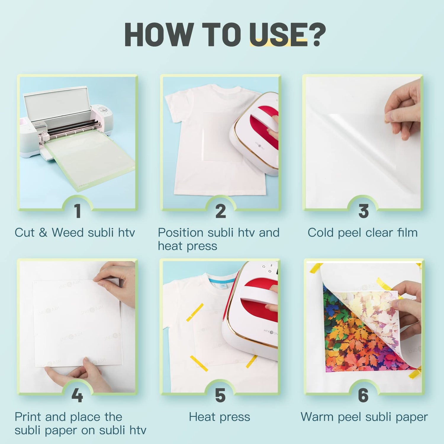 - 【Easy to Use】- Compared with sublimation spray for cotton shirts (uneven coating, fading and yellowing), our clear sublimation vinyl is much easier to use. Firstly cut the clear htv vinyl via Cricut or Silhoutte, and proceed with heat transfer, then layer sublimation paper, you could finish unique and complicated designs effortlessly.