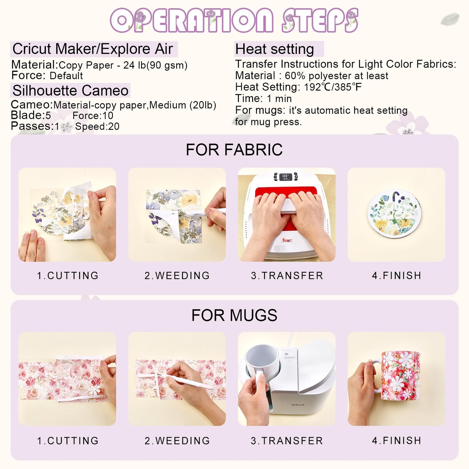 - 【WIDELY TRANSFER】They can be widely used in more than 60% polyester fabric, sublimation blanks, etc. The results are long-lasting, bright, beautiful, seamlessly smooth transfers that never flake, peel, wrinkle, or crack.