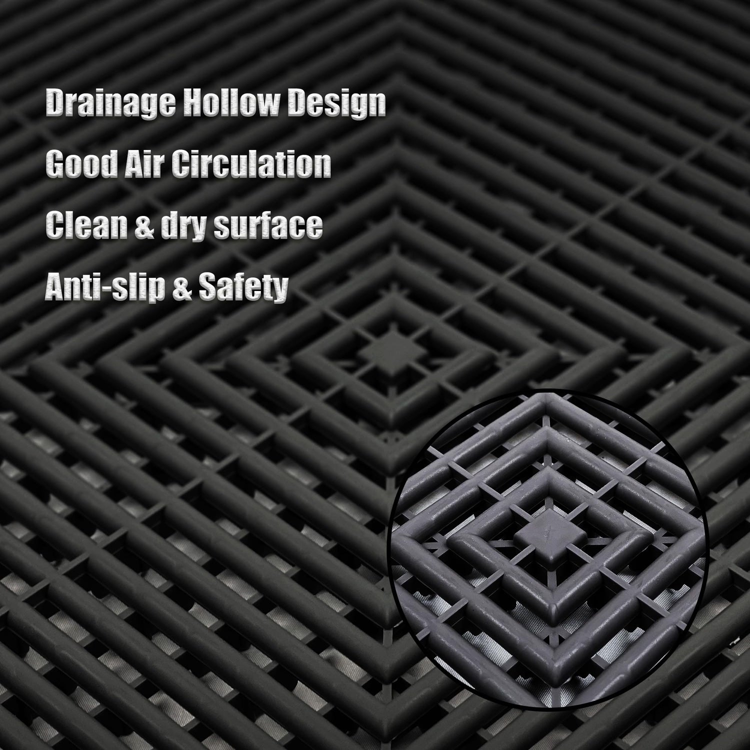 HTWELL 24 Pack 16"x 16"Interlocking Garage Floor Tiles,Modular Drainage Floor Mat,Non-Slip Splicing Interlocking Drainage Mats Floor Tile for Garage Car Wash Basement,etc(Black)