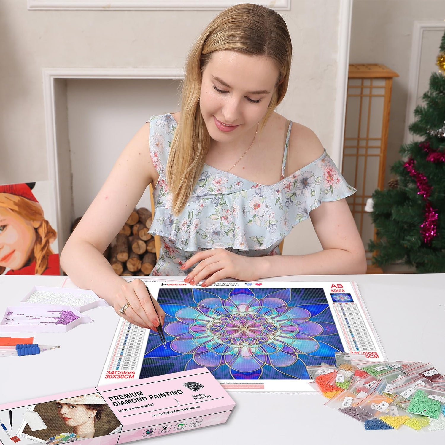 Huacan 5D Diamond Painting Kit Mandala Diamond Art Kits for Adults Full Square Drill Flower DIY Paint with Diamonds Art Craft Home Decor 11.8x11.8in