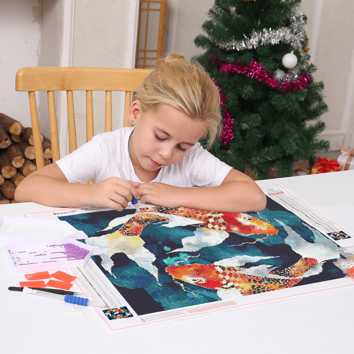 - Accessories: Koi paint by diamonds includes: 1*high definition canvas; 2*long adhesive blocks, 1*adhesive diamond pen with non-slip sleeve with 2 replacement tips, 1*large tray, ziplock bag, 30% more diamonds. Rich diamond painting accessories, no need to buy extra