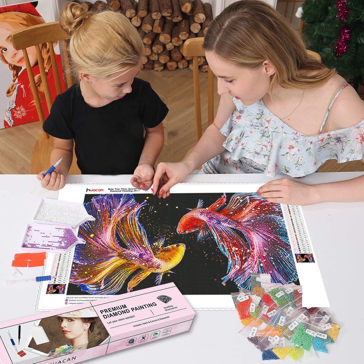 Huacan Diamond Painting Kits for Adults Fish Diamond Art Kit AB Diamond Painting Full Drill 5D DIY Round Rhinestone Art Craft Kits for Gift Home Wall Decor 19.6x9.8 Inch