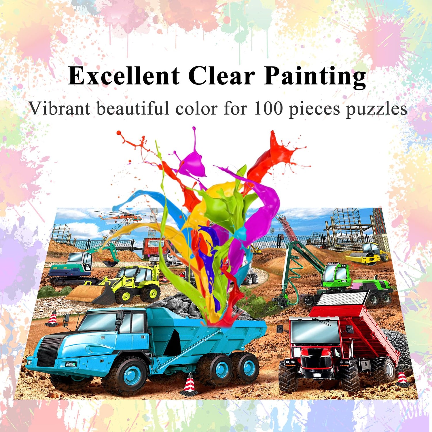 HUADADA Puzzles for Kids Ages 4-8, Construction Vehicles 100 Piece Puzzles for Kids Educational Jigsaw Puzzles Toys for Boys and Girls Age 4, 5, 6, 7, 8-10 Years Old (15" x 10")